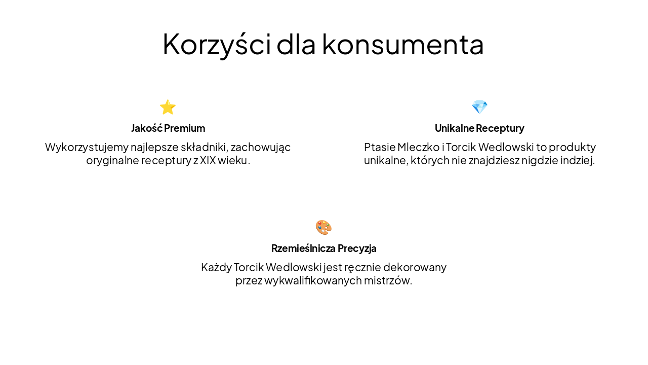 💎 Unikalne Receptury Ptasie Mleczko i Torcik Wedlowski to produkty unikalne, których nie znajdziesz nigdzie indziej.