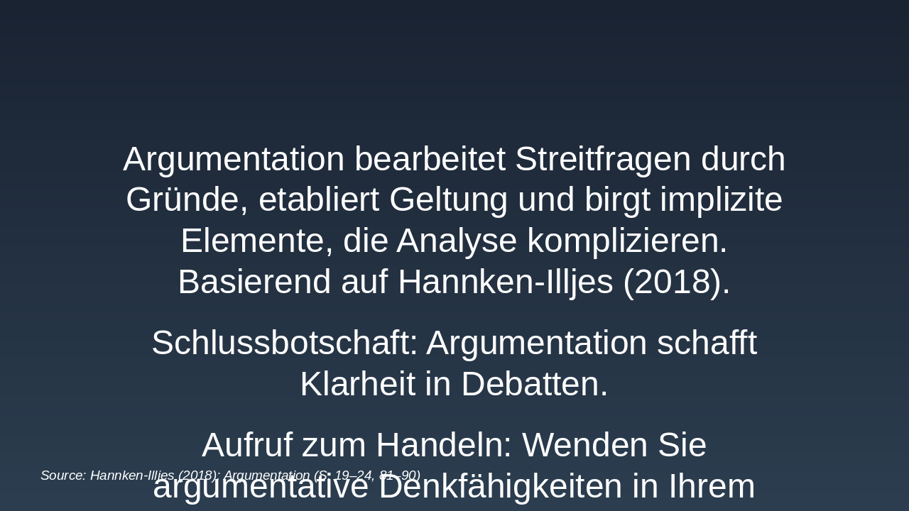 Schlussbotschaft: Argumentation schafft Klarheit in Debatten.