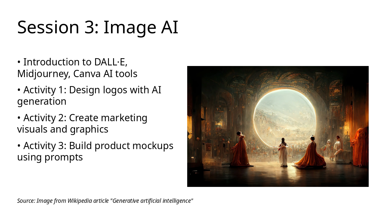 Hands-on sessions with LLMs, image, audio, and video AI.