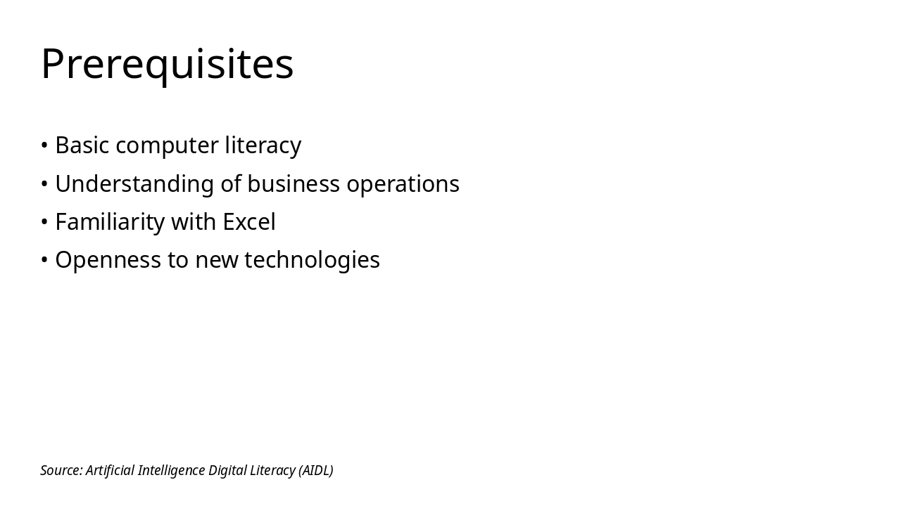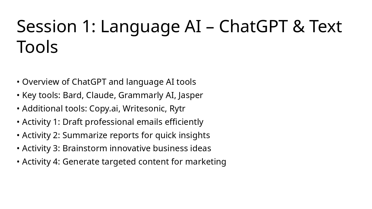 Cover basics of AI literacy, core concepts, and language tools.