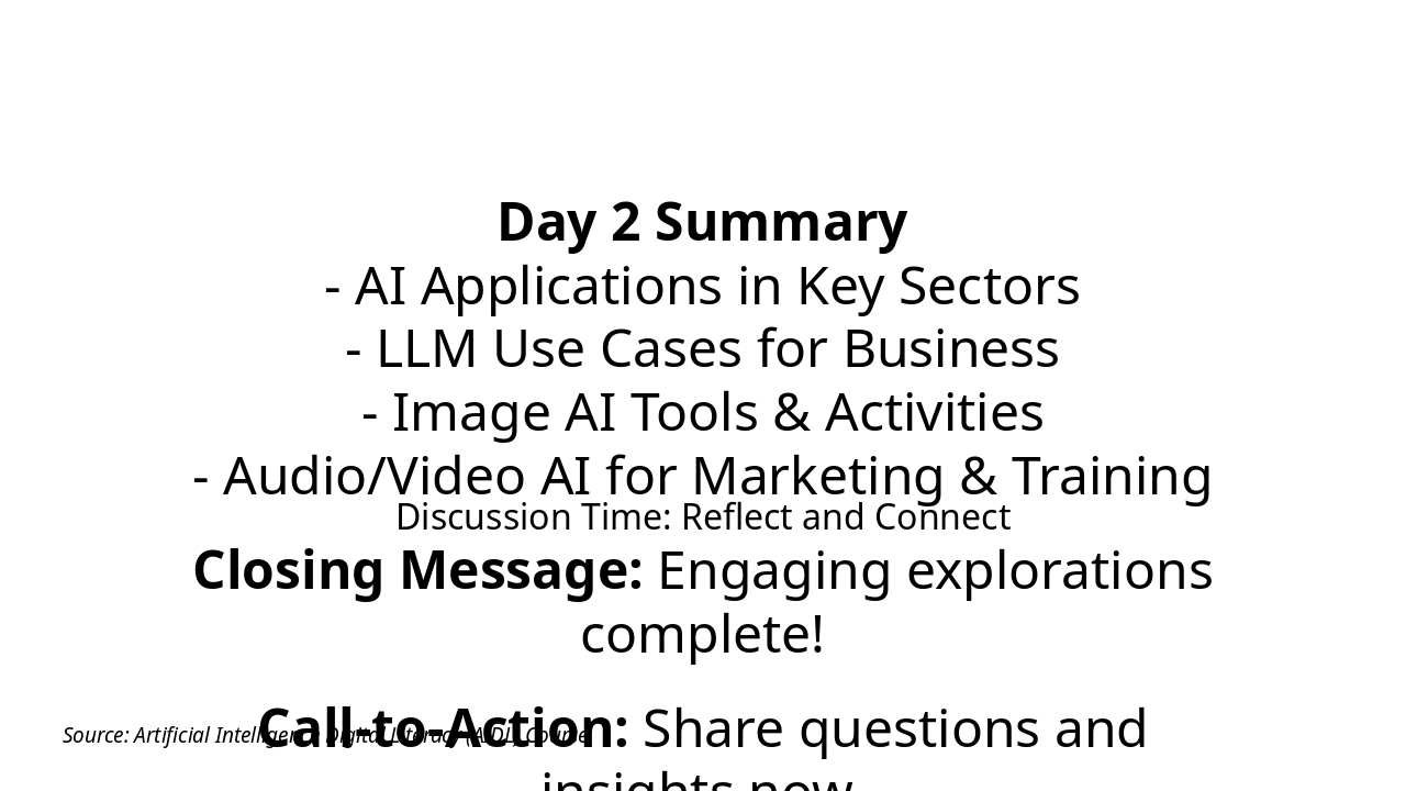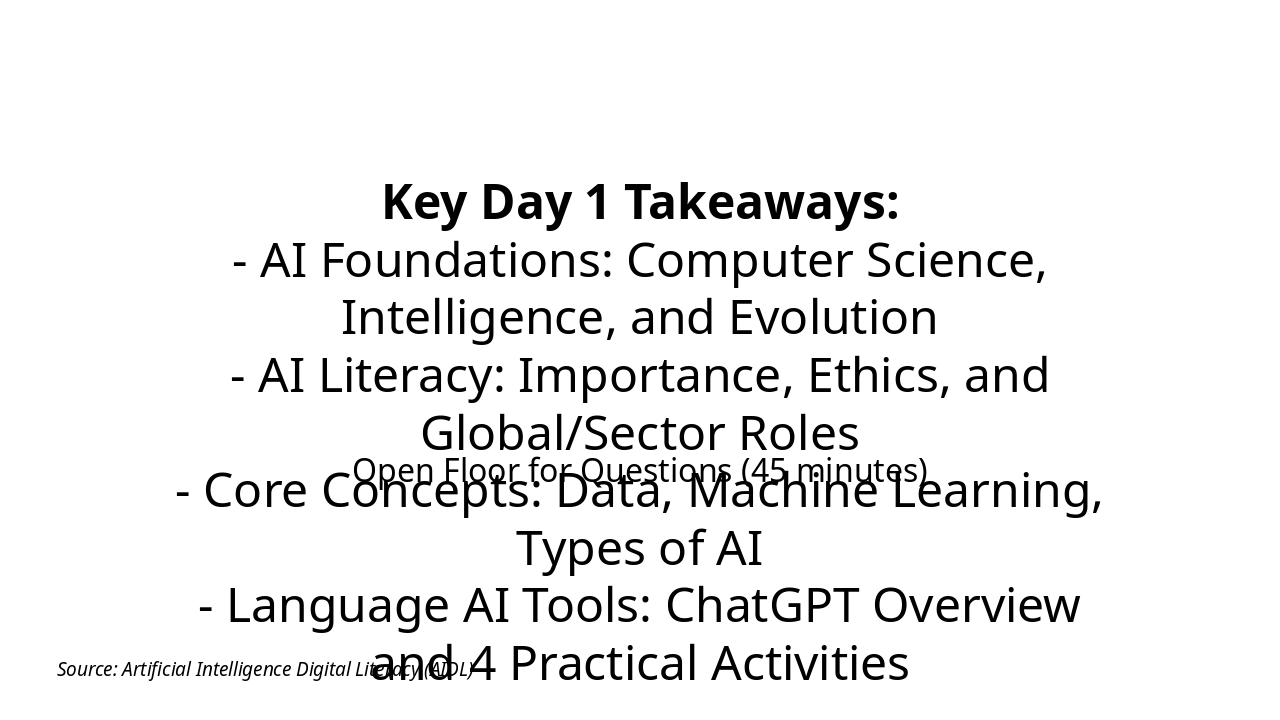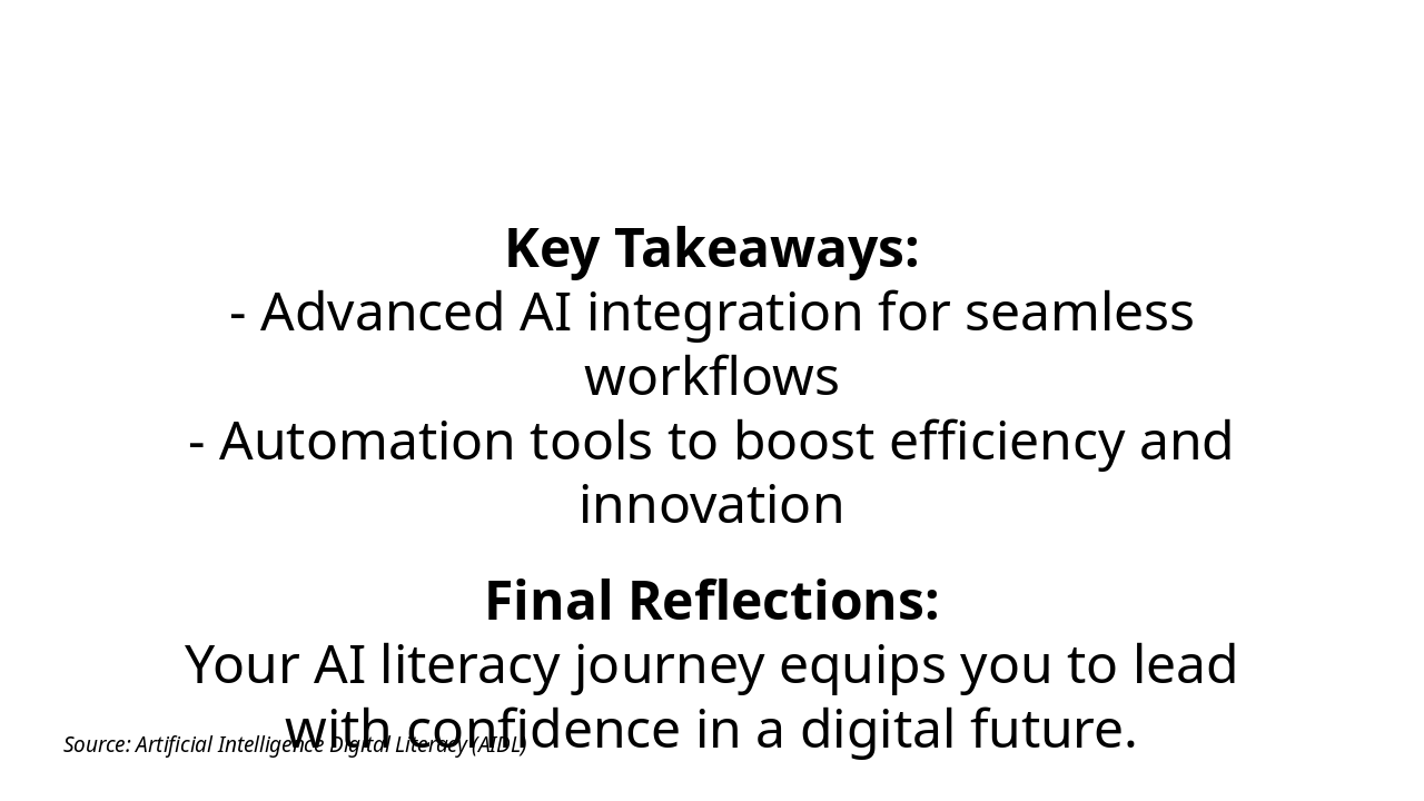 Summarize key takeaways and address final questions. Source: Artificial Intelligence Digital Literacy (AIDL)