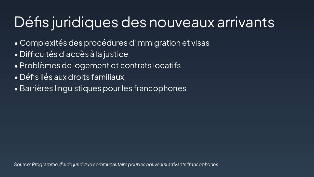 Présentation du contexte et identification des besoins des nouveaux arrivants francophones.