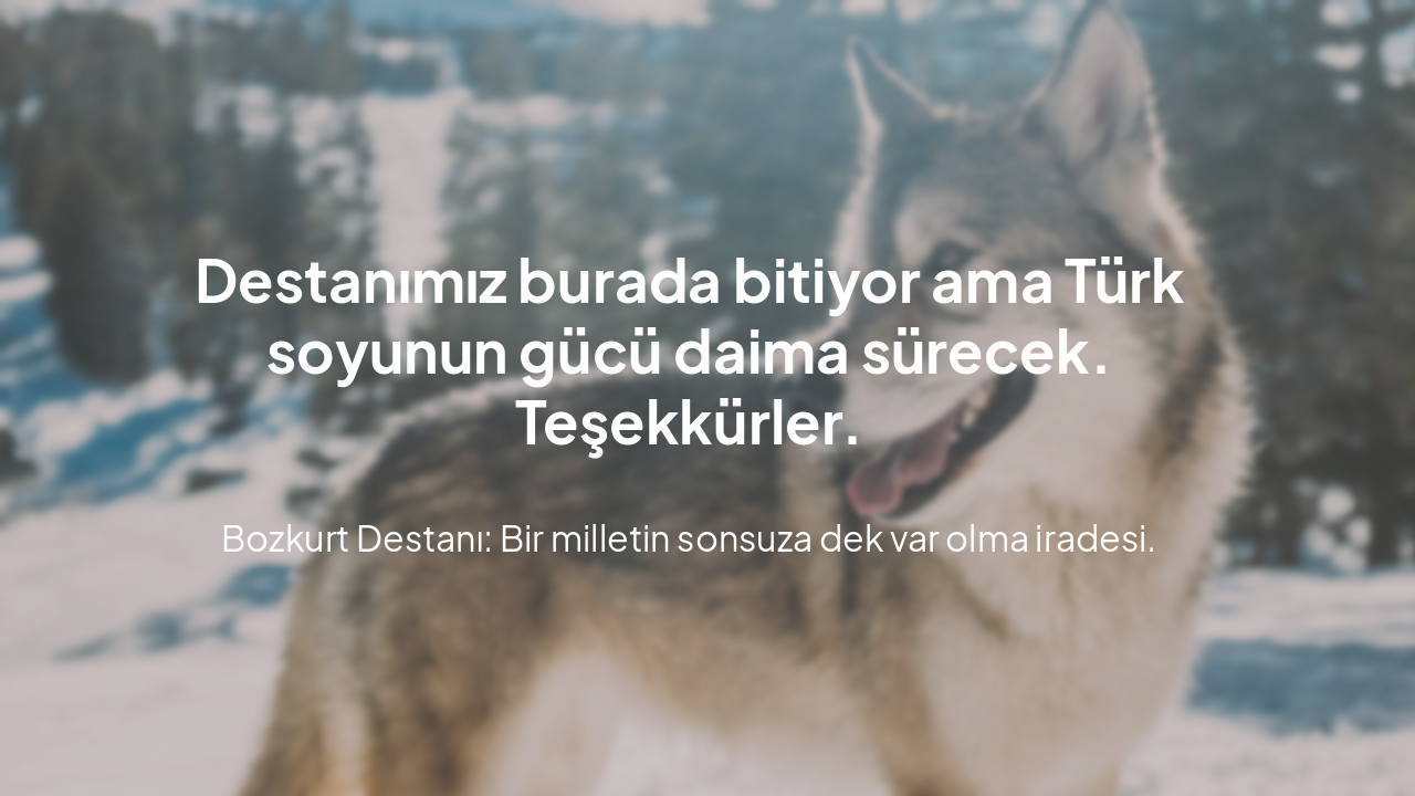 Destanımız burada bitiyor ama Türk soyunun gücü daima sürecek. Teşekkürler.