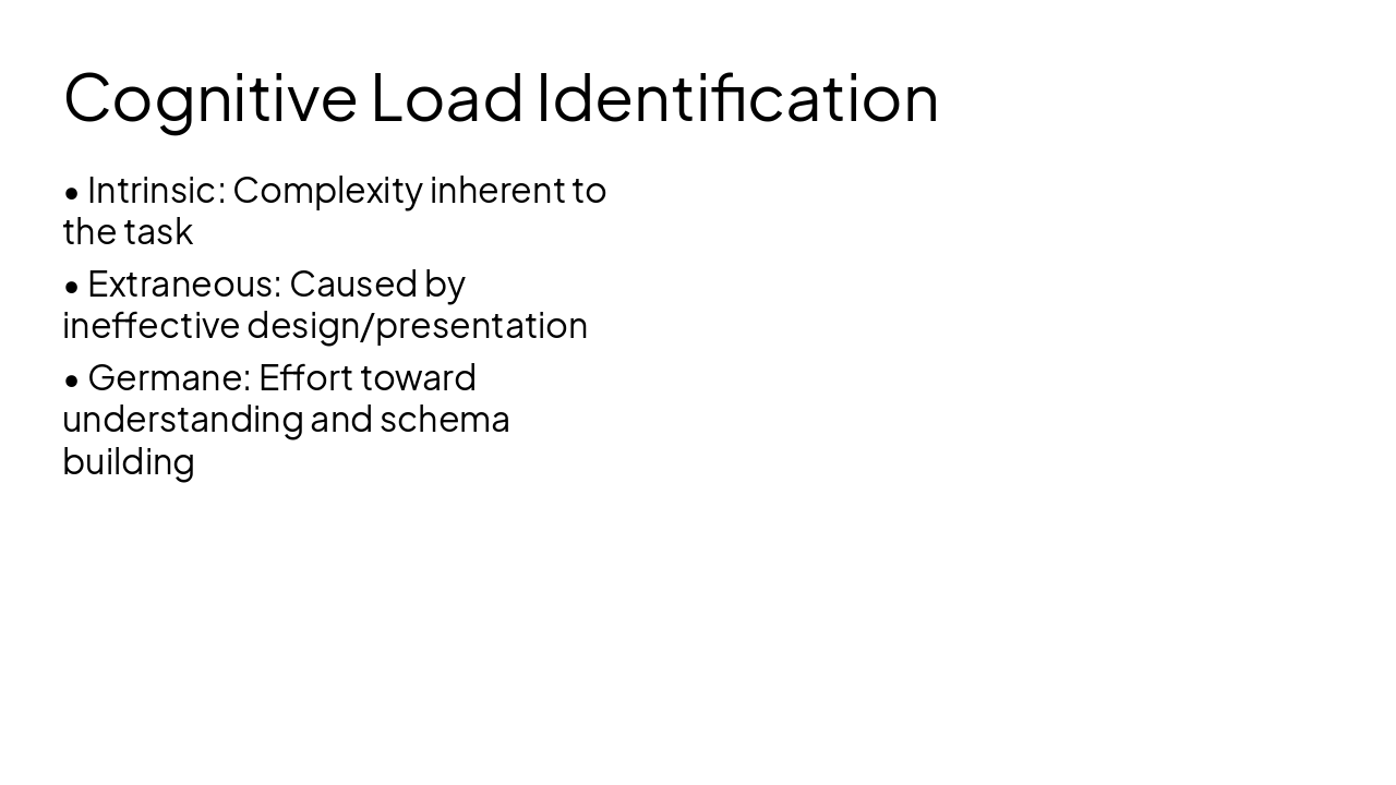🧠 Cognitive Load Theory Minimized extraneous load; focused germane effort