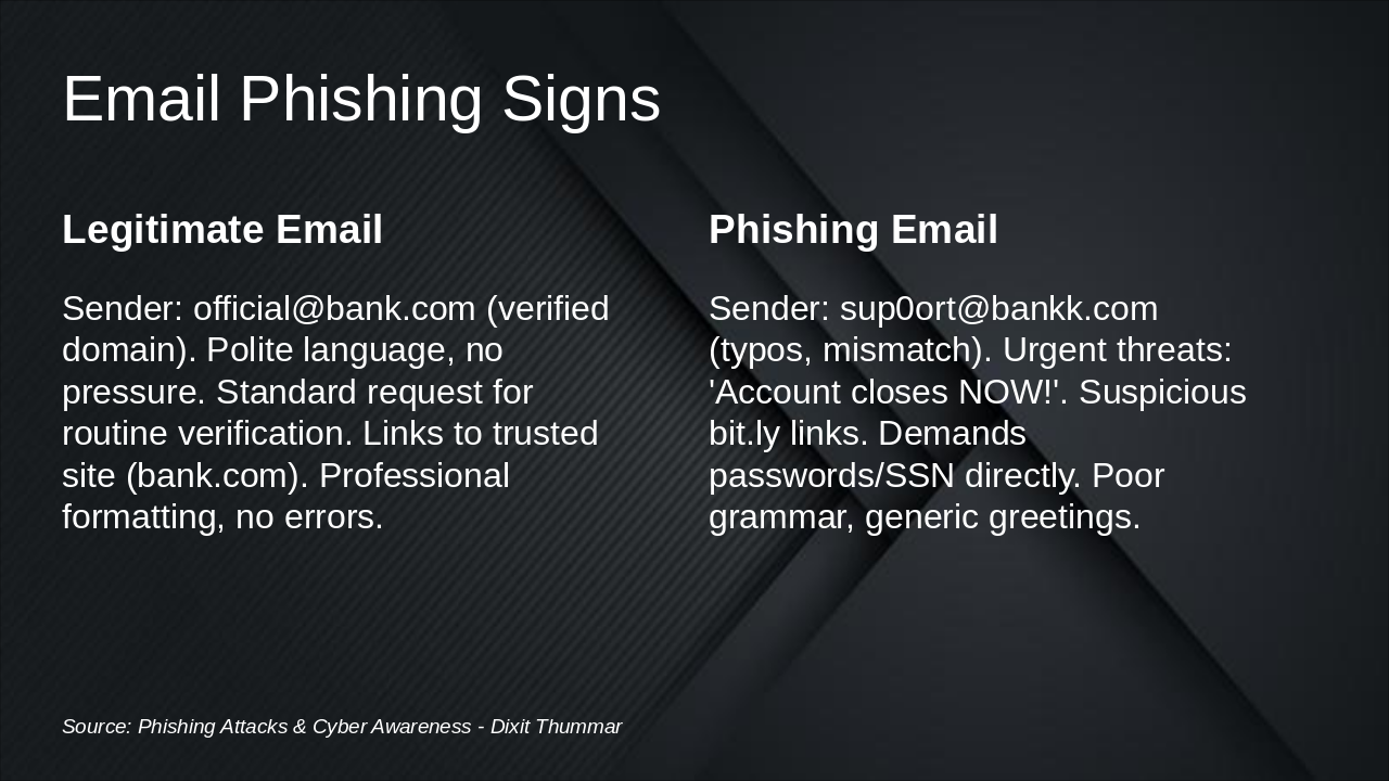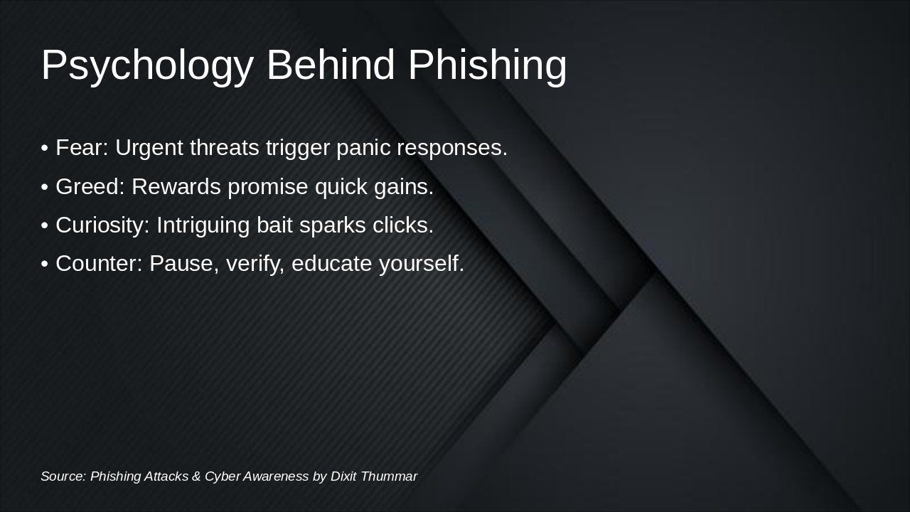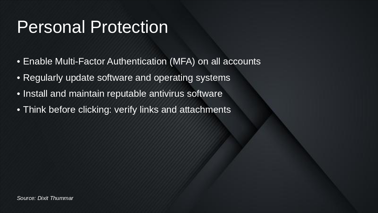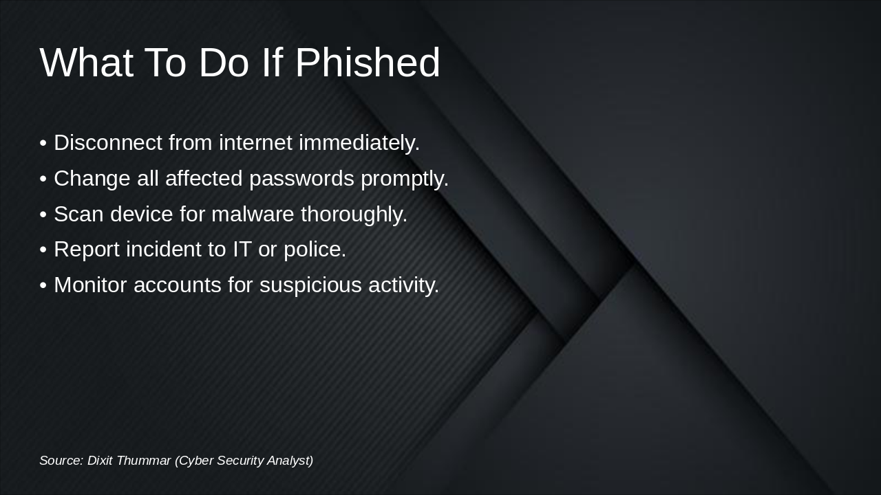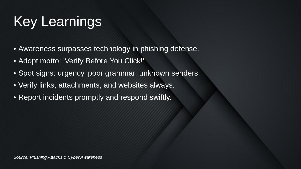 Summary learnings and final motto. Source: Phishing Attacks & Cyber Awareness by Dixit Thummar