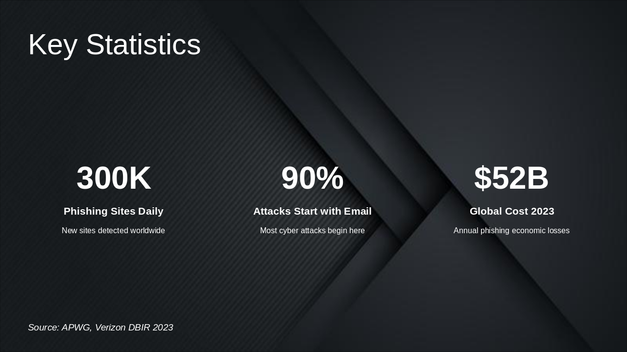 Welcome message: Stay vigilant! Key stats: 68% breaches human error, avg $4.88M cost, 1M+ attacks daily. Presentation agenda overview.