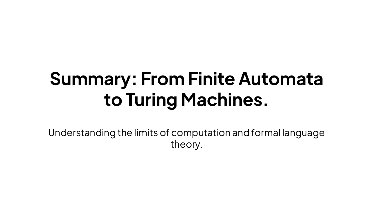 Summary: From Finite Automata to Turing Machines.