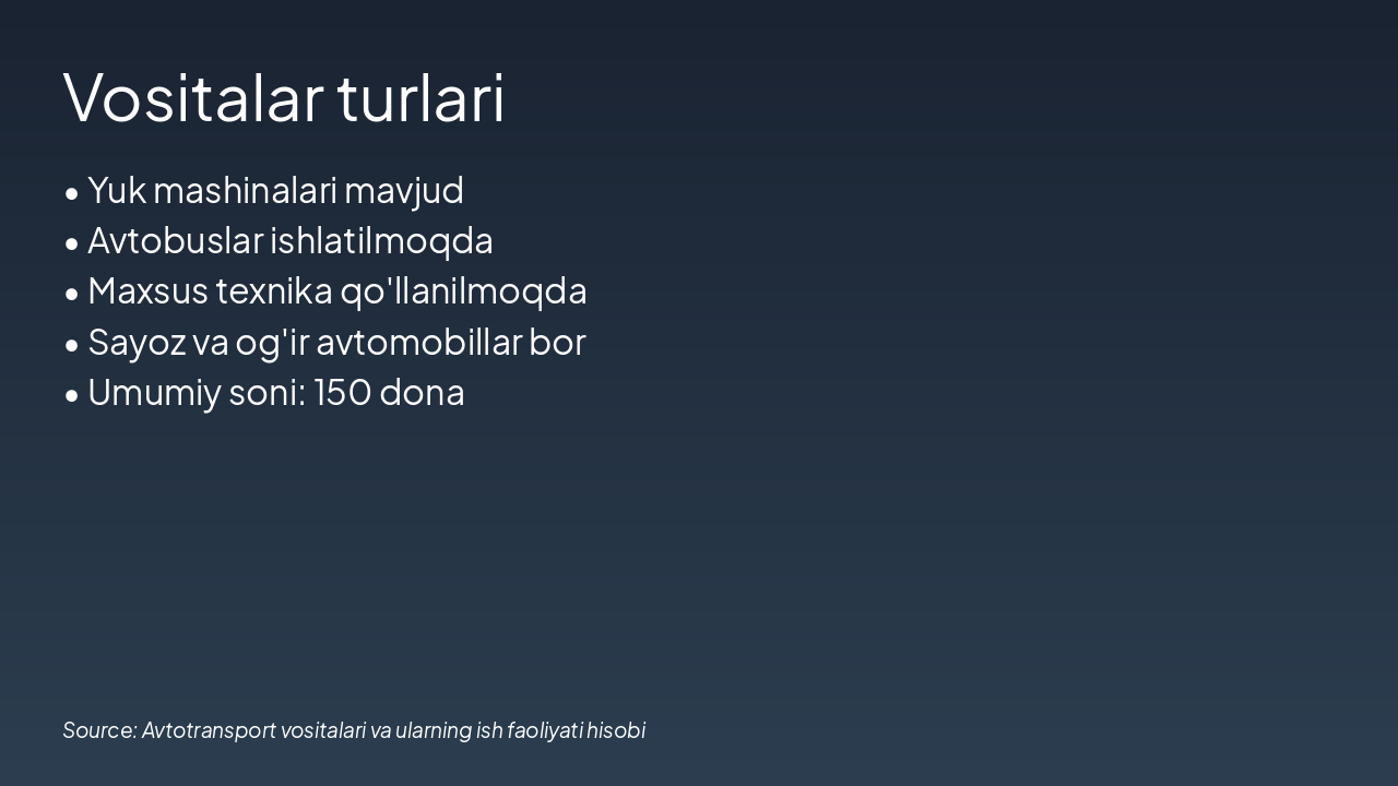 Slide 1 - Avtotransport vositalari va ish faoliyati hisobi