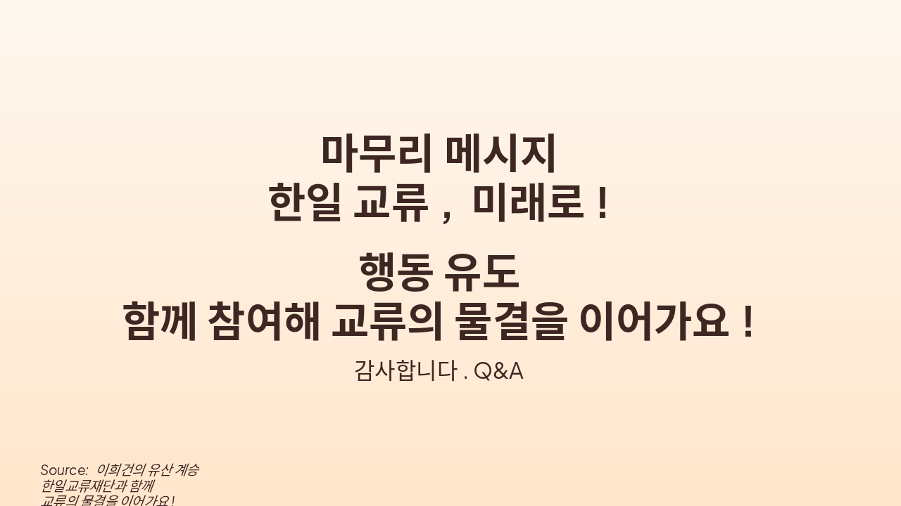 Source: 이희건의 유산 계승 한일교류재단과 함께 교류의 물결을 이어가요! 감사합니다. Q&A