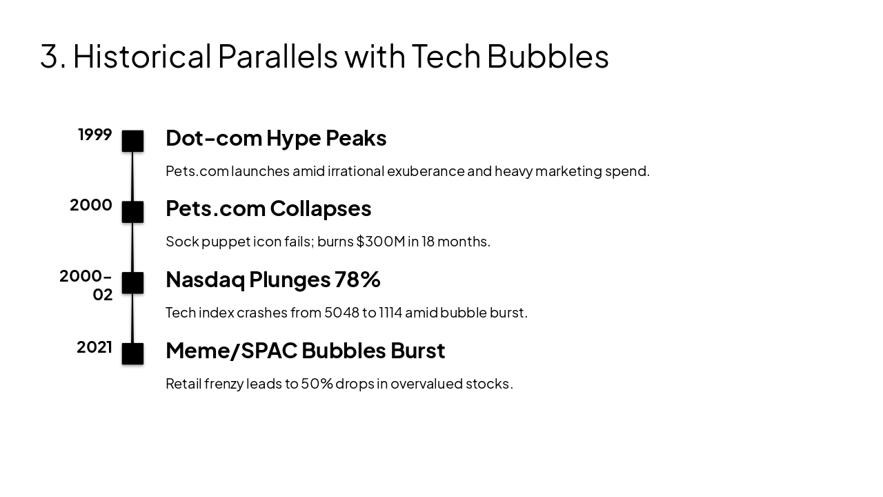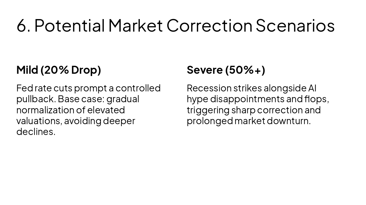 > The AI bubble is bigger than the dot-com bubble, with a likely correction of 30-50%, though optimists foresee sustainable growth ahead.