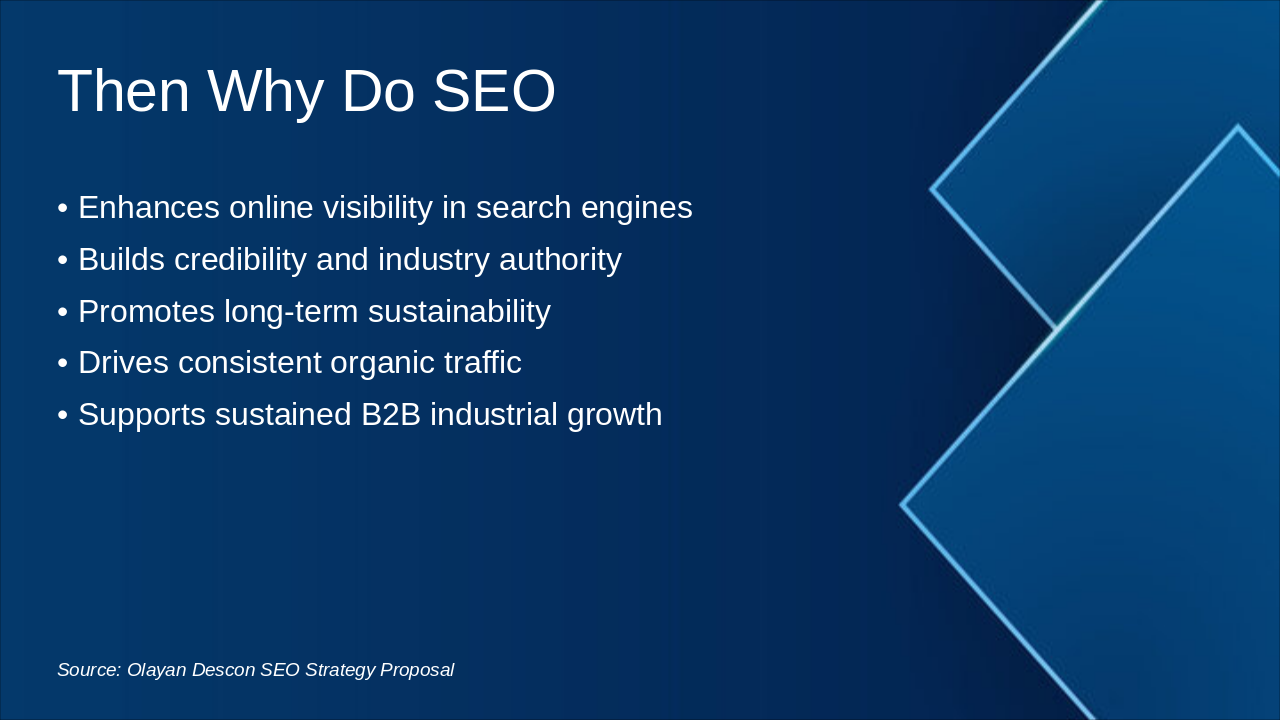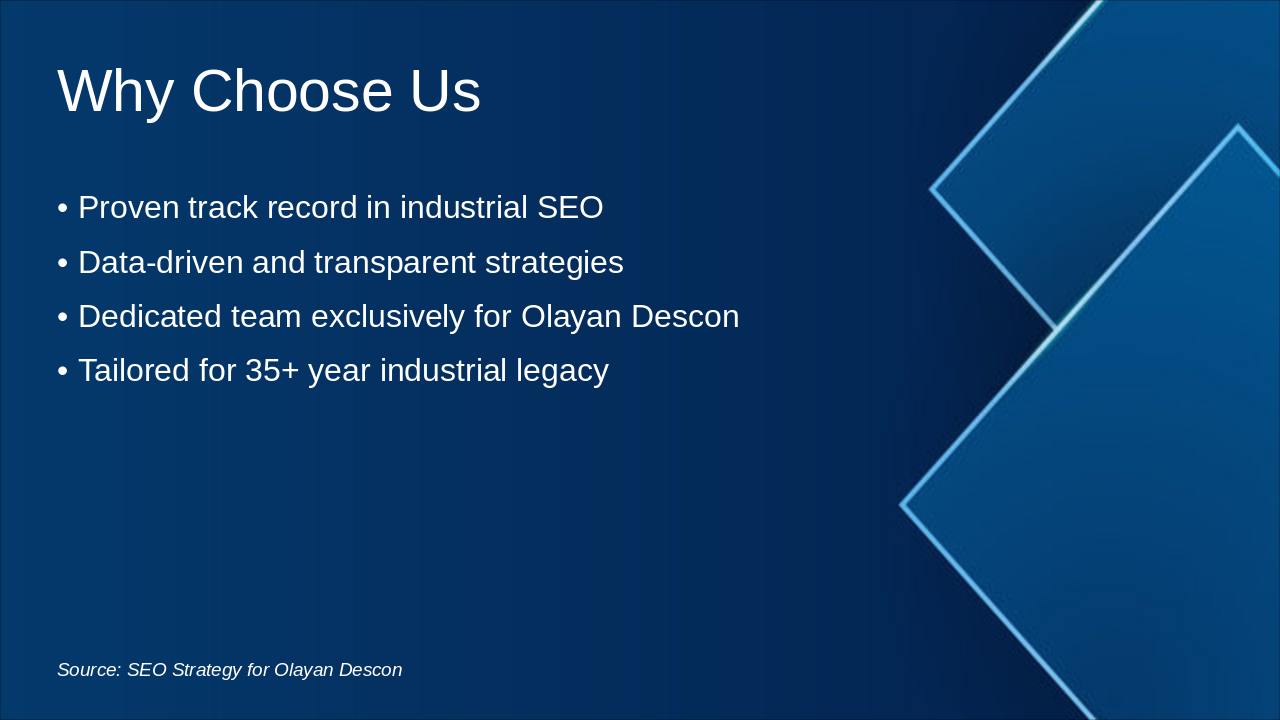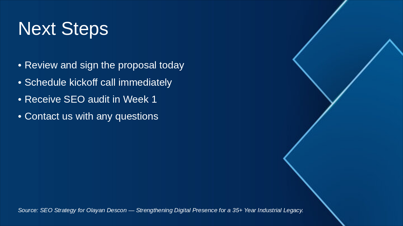 Action plan and closing remarks. Source: SEO Strategy for Olayan Descon — Strengthening Digital Presence for a 35+ Year Industrial Legacy.