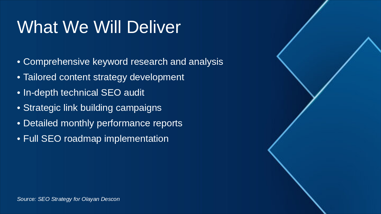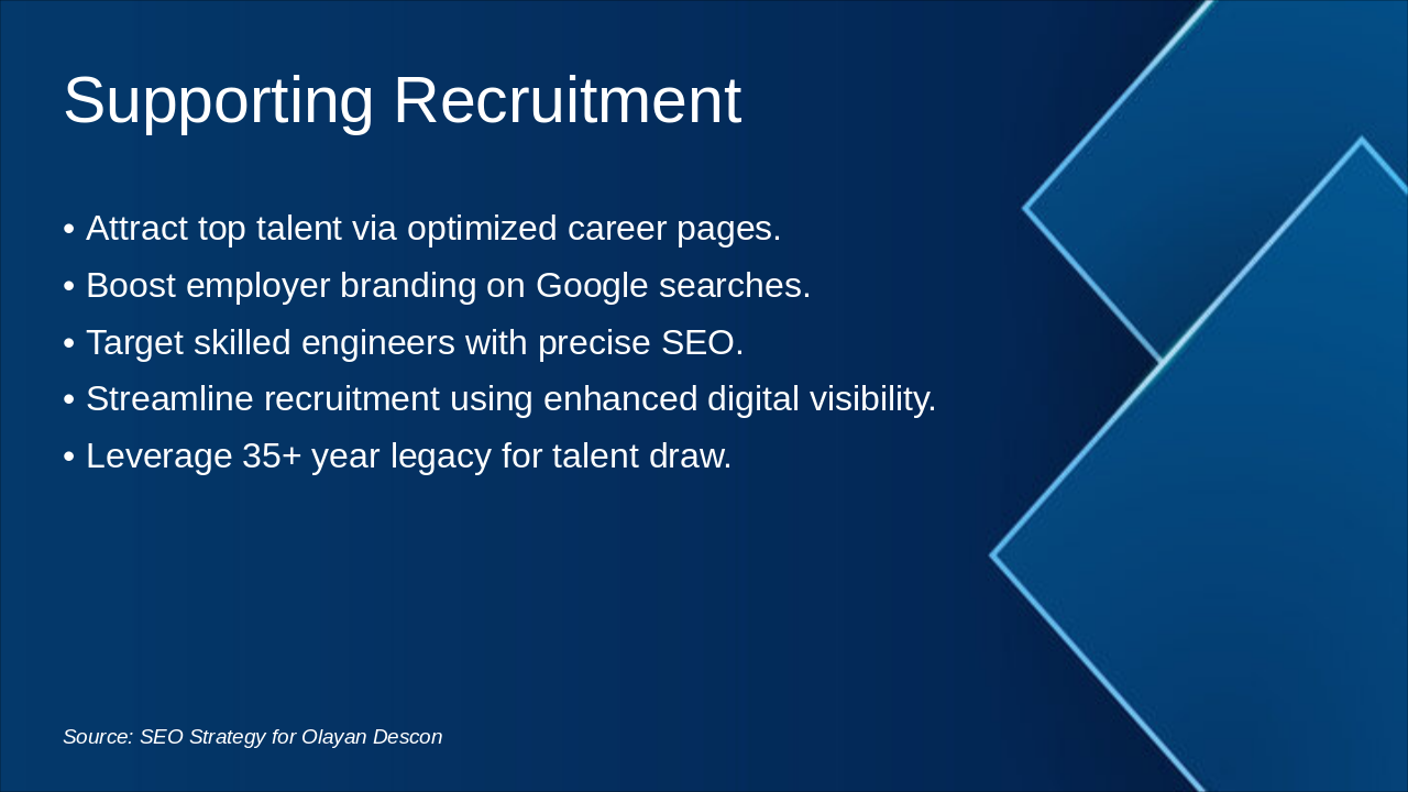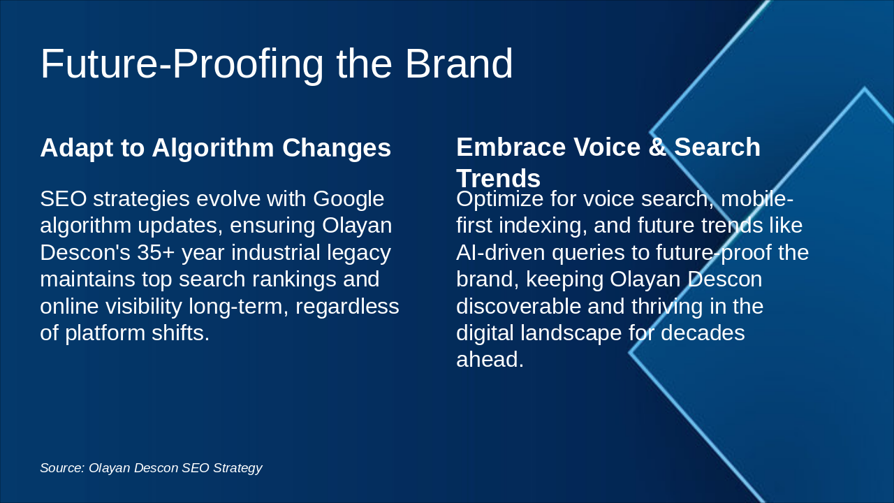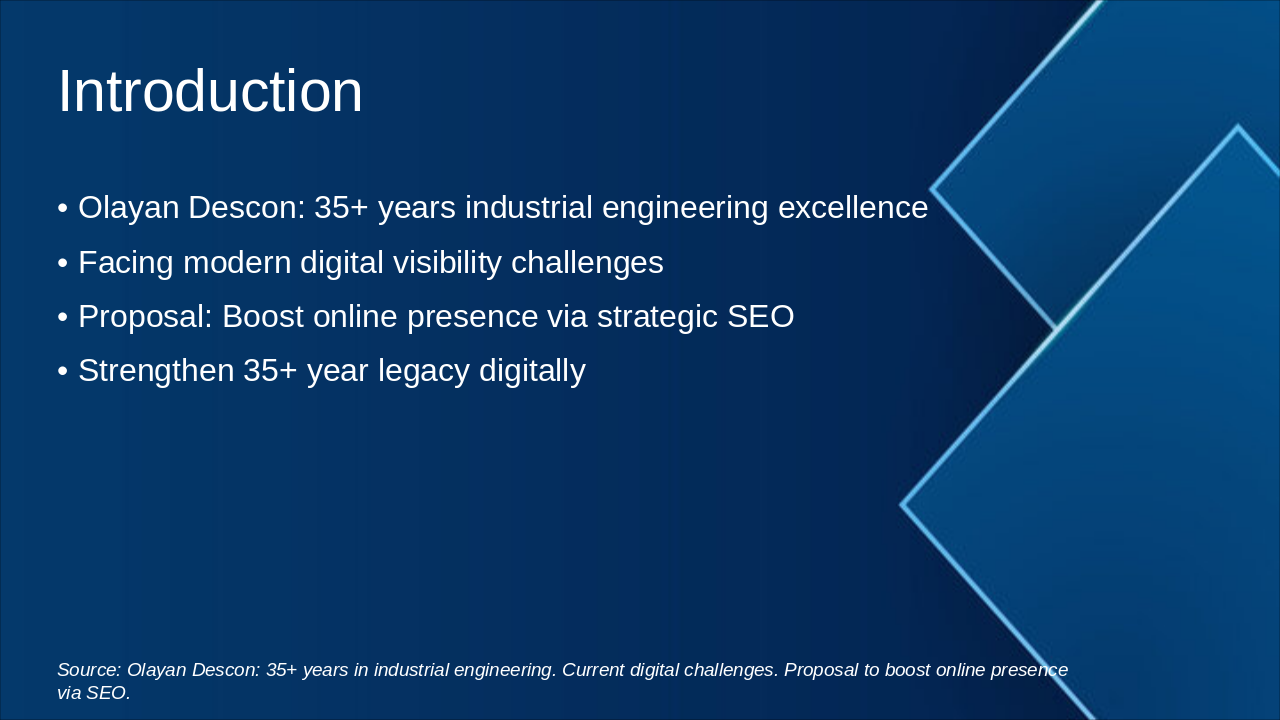 Action plan and closing remarks. Source: SEO Strategy for Olayan Descon — Strengthening Digital Presence for a 35+ Year Industrial Legacy.