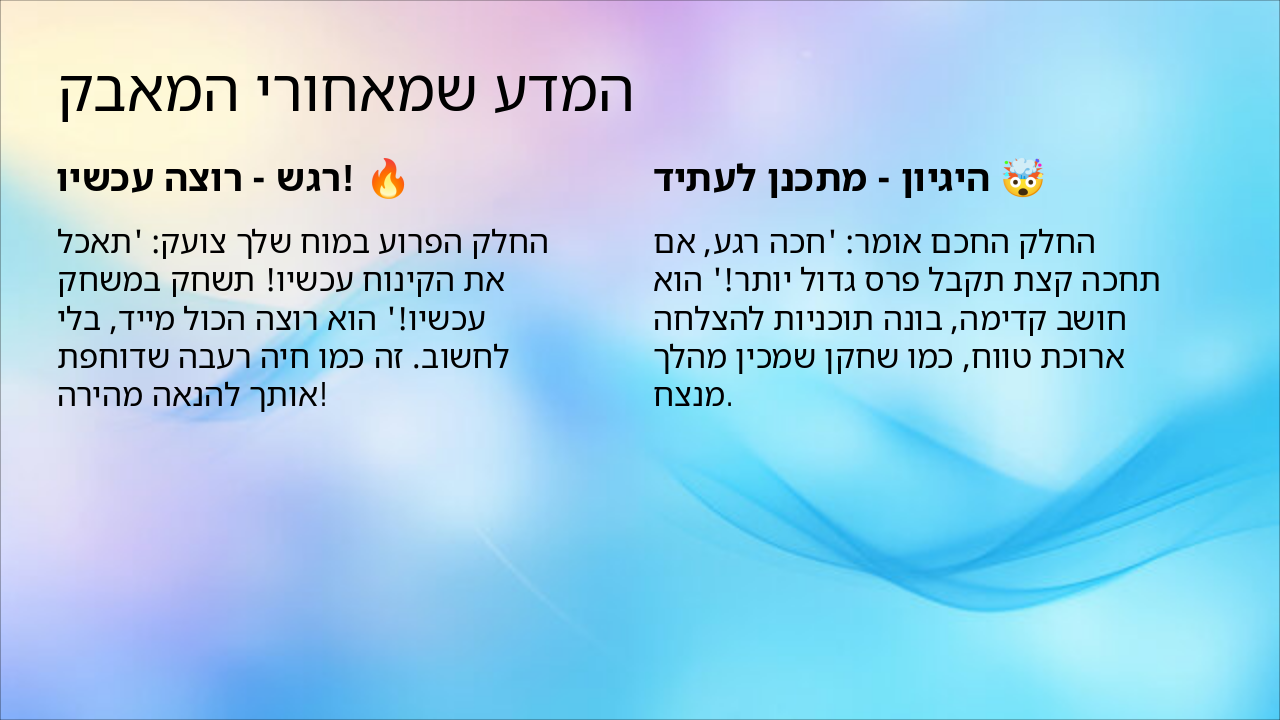 | רגש - רוצה עכשיו! 🔥 | היגיון - מתכנן לעתיד 🤯 |