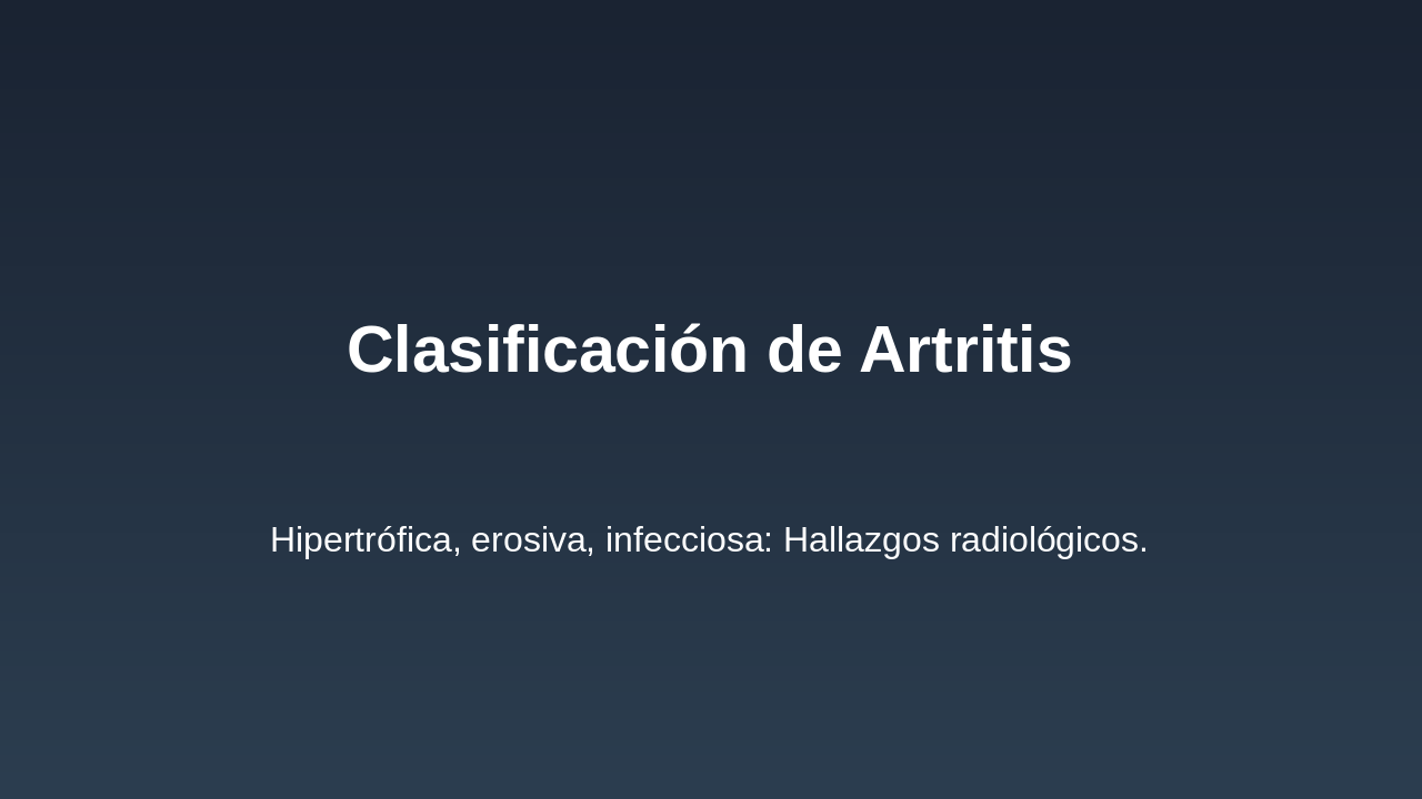 Hipertrófica, erosiva, infecciosa; artrosis, reumatoide, psoriásica, CPPD.