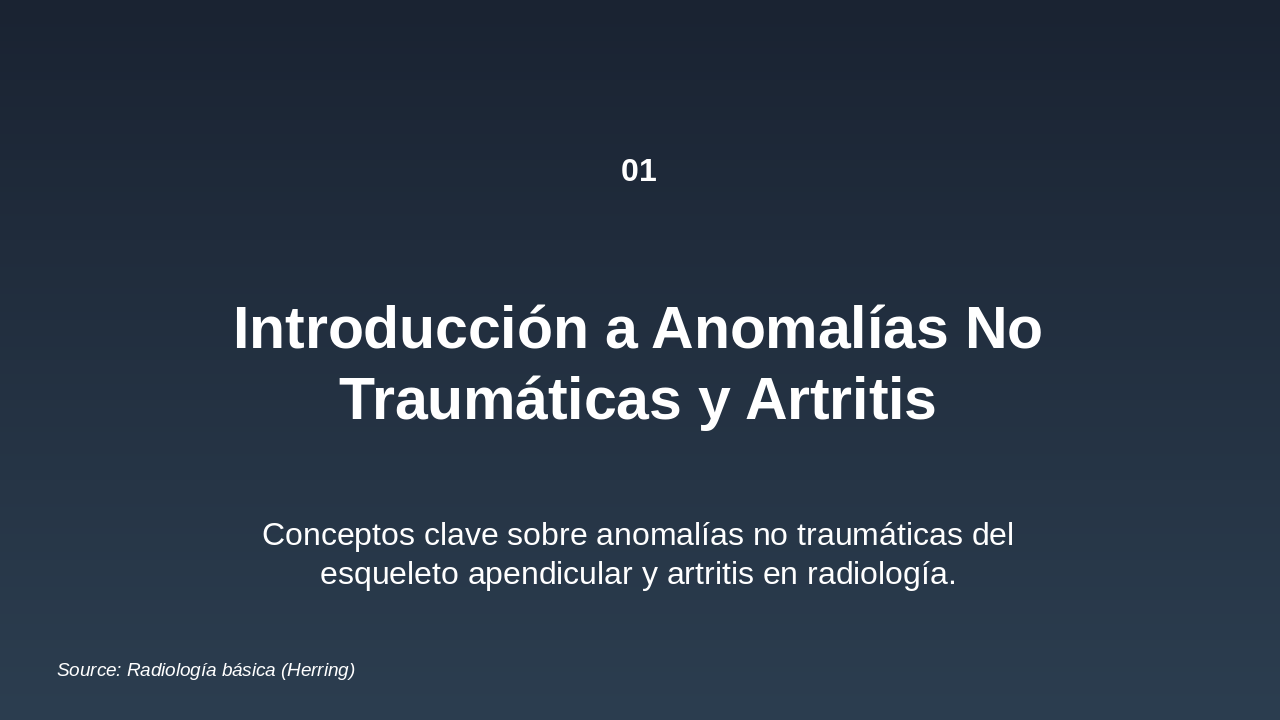 Estructura principal de la presentación en español sobre anomalías esqueléticas no traumáticas y artritis.
