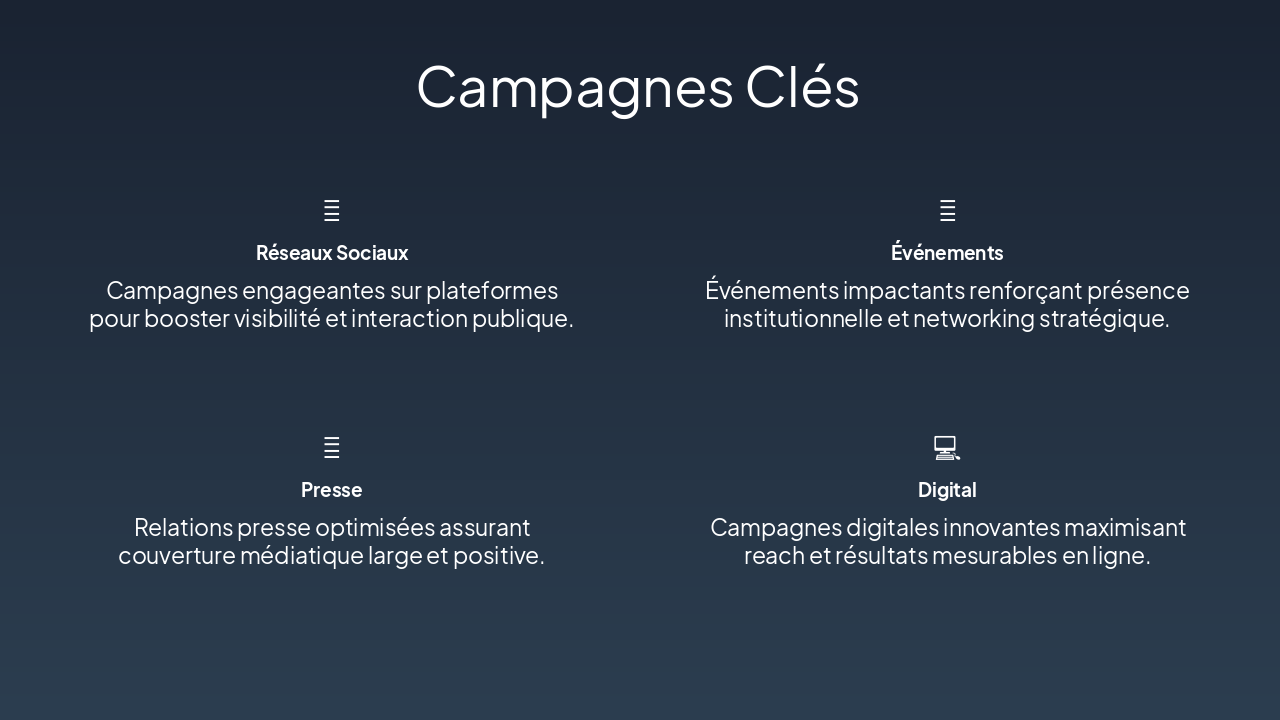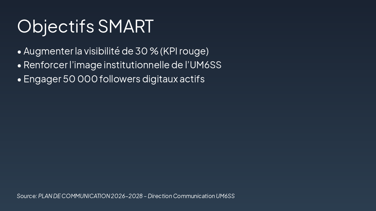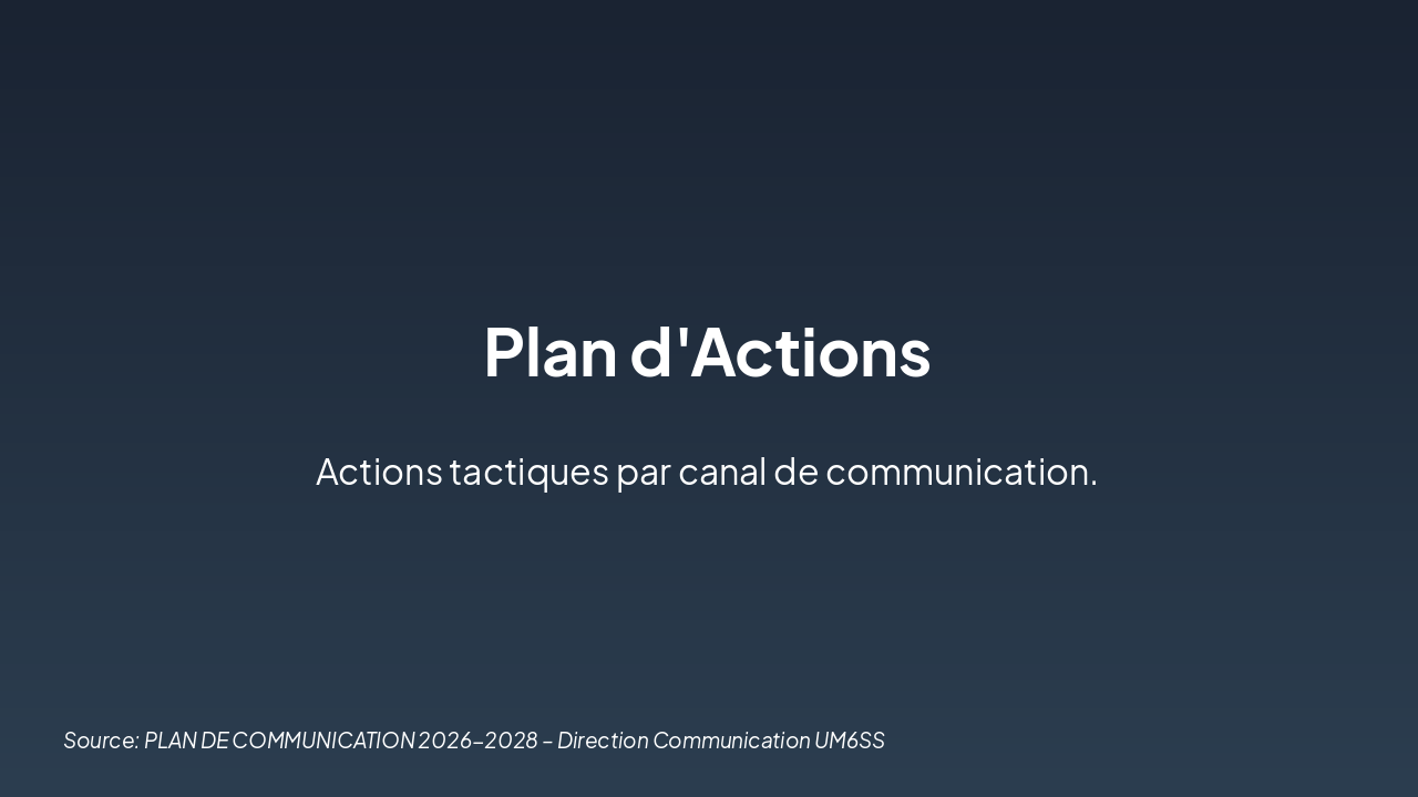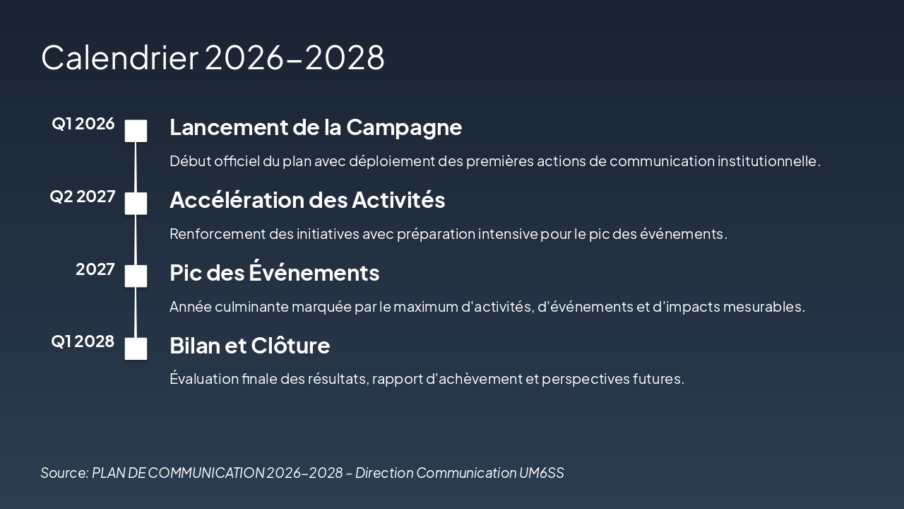 { "headers": [ "Canaux", "2026 (k DH)", "2027 (k DH)", "2028 (k DH)", "Total (k DH)" ], "rows": [ [ "Réseaux sociaux ", "800", "850", "900", "2 550" ], [ "Presse écrite", "400", "450", "500", "1 350" ], [ "Radio / TV", "300", "350", "400", "1 050" ], [ "Événements et autres", "25", "25", "25", "75" ] ] }
