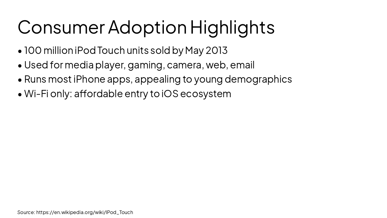 Source: https://en.wikipedia.org/wiki/IPod_Touch; https://en.wikipedia.org/wiki/List_of_iPhone_models