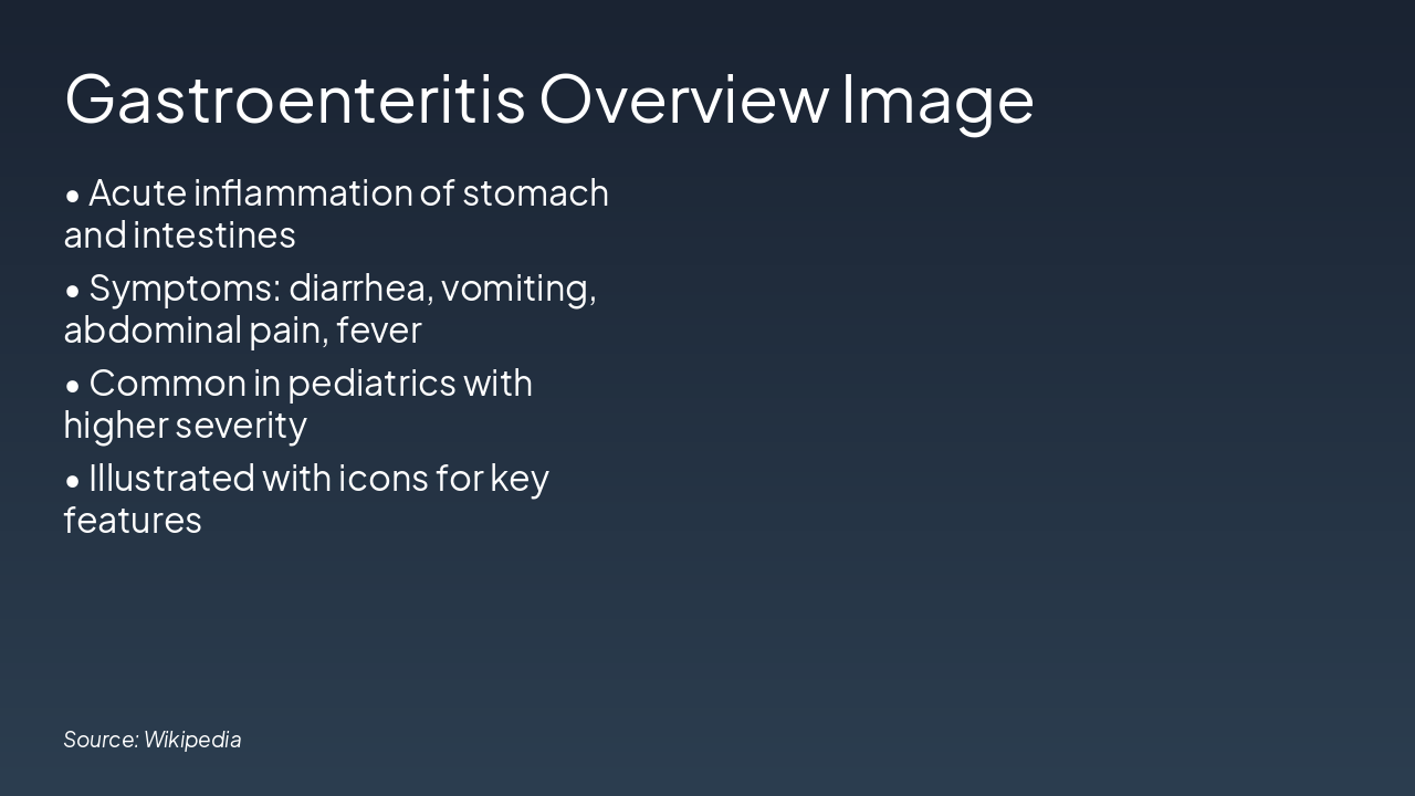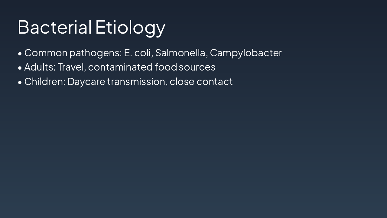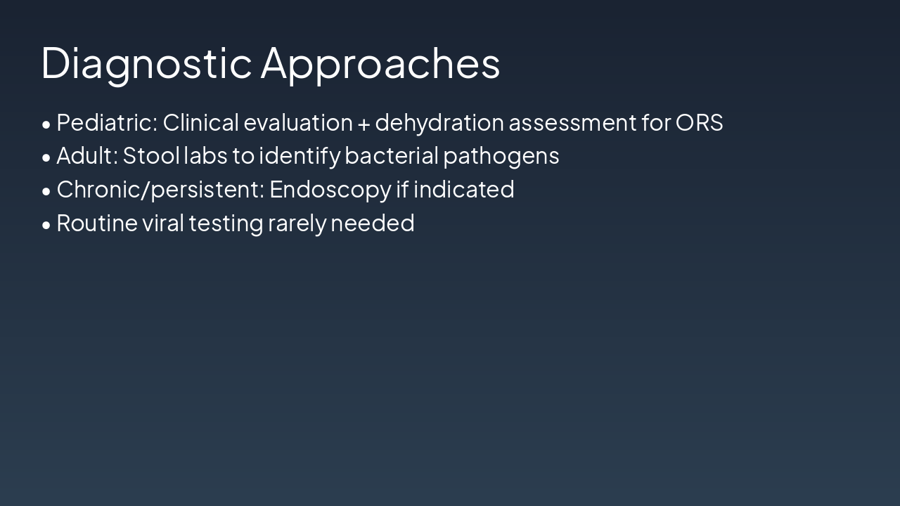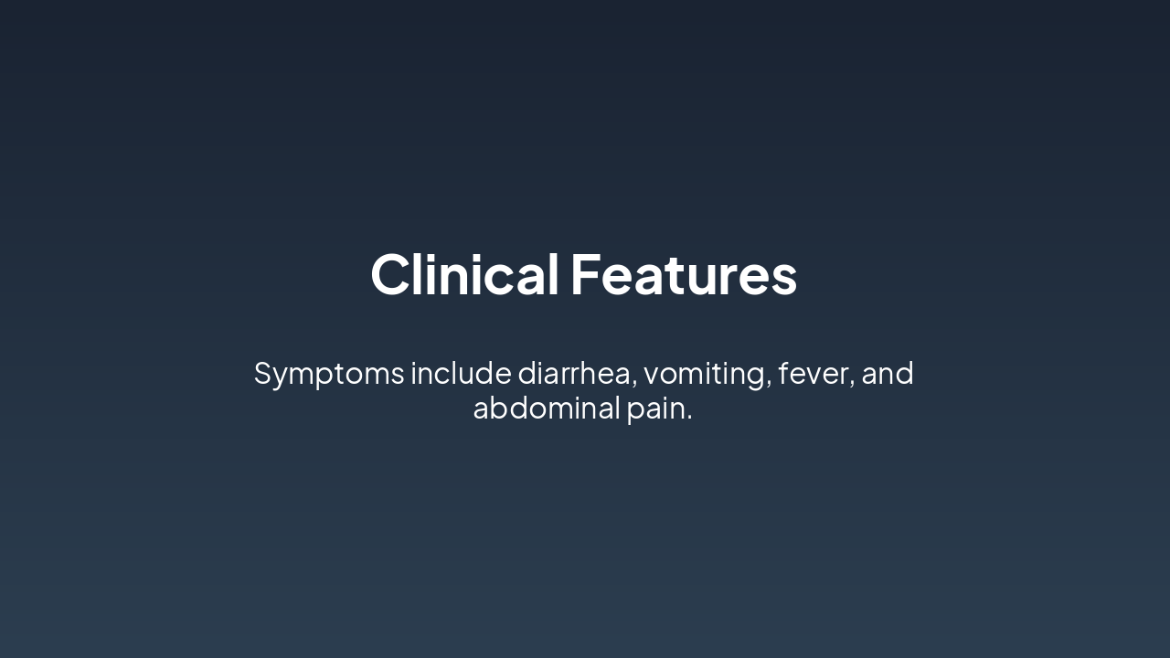 Source: Enterotoxins/invasion ā Diarrhea. Kids: faster dehydration; Adults: slower.