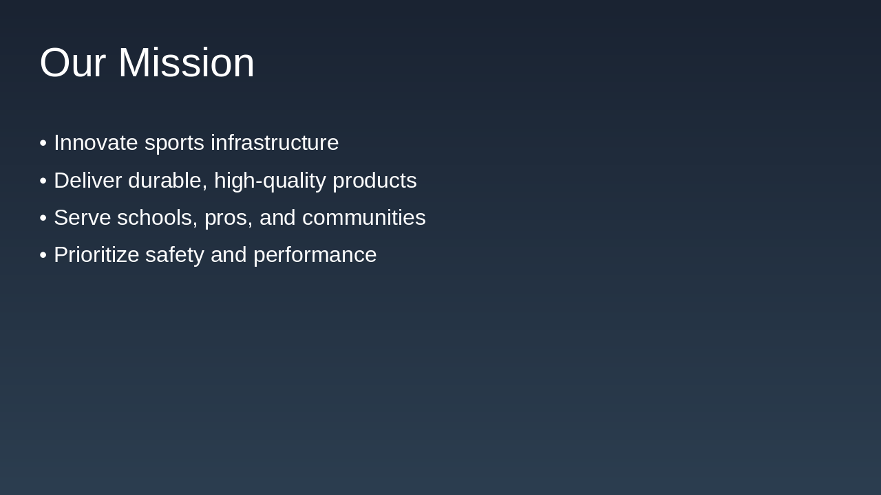 Introduction to Sportsfield Specialties mission and values.