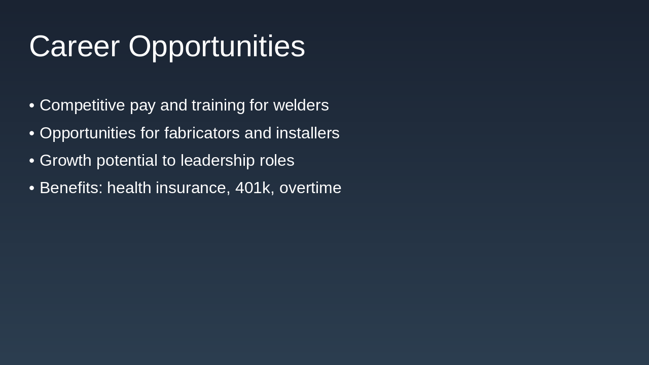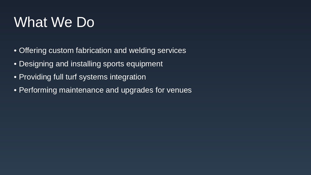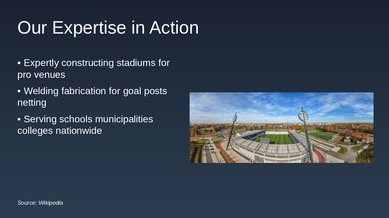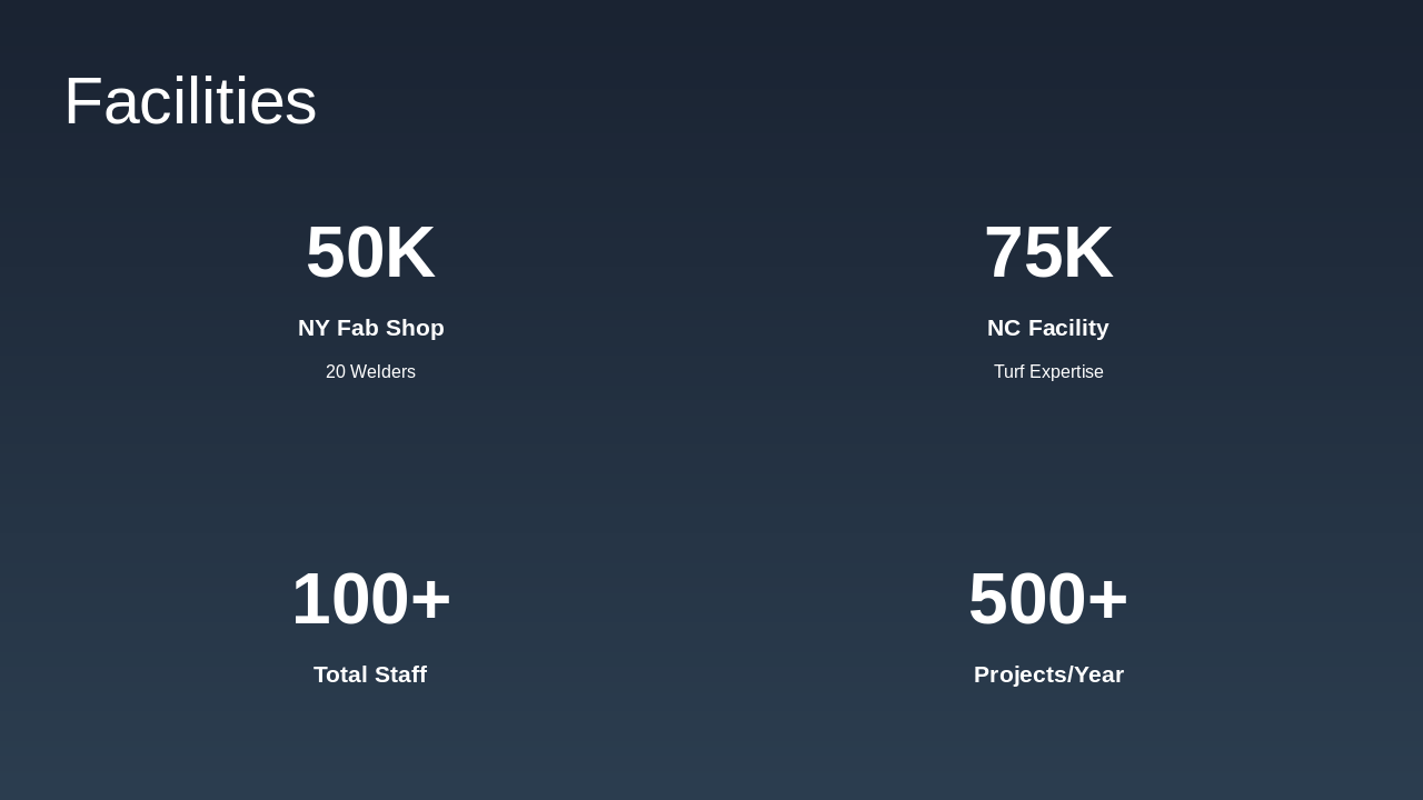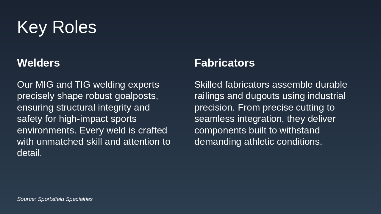 Welder opportunities and highlights of major projects. Source: Sportsfield Specialties