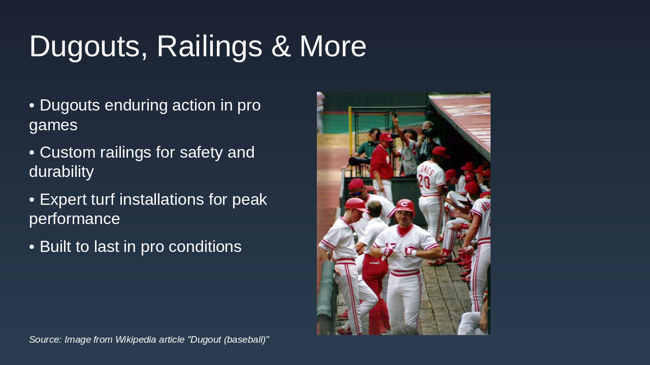 Goalposts netting dugouts railings turf for schools municipalities colleges pro venues.