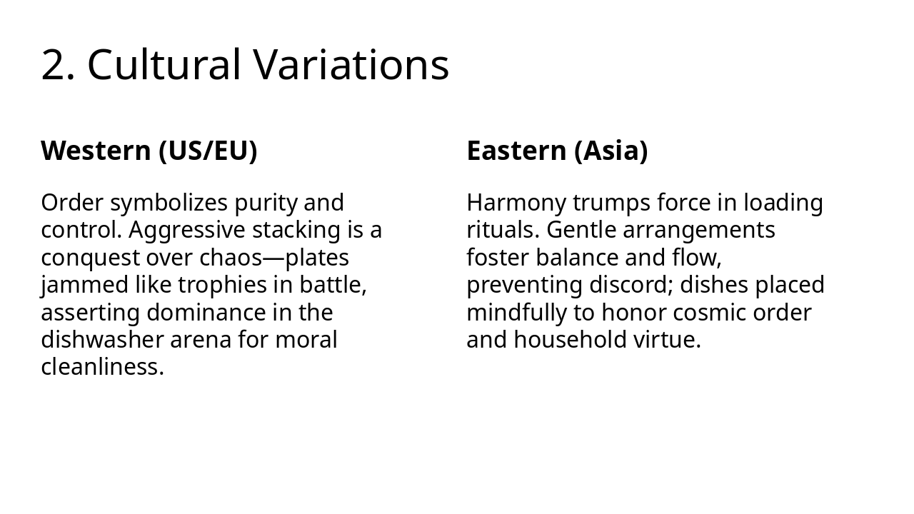 How global cultures interpret order, cleanliness, and dishwasher loading ceremonies.