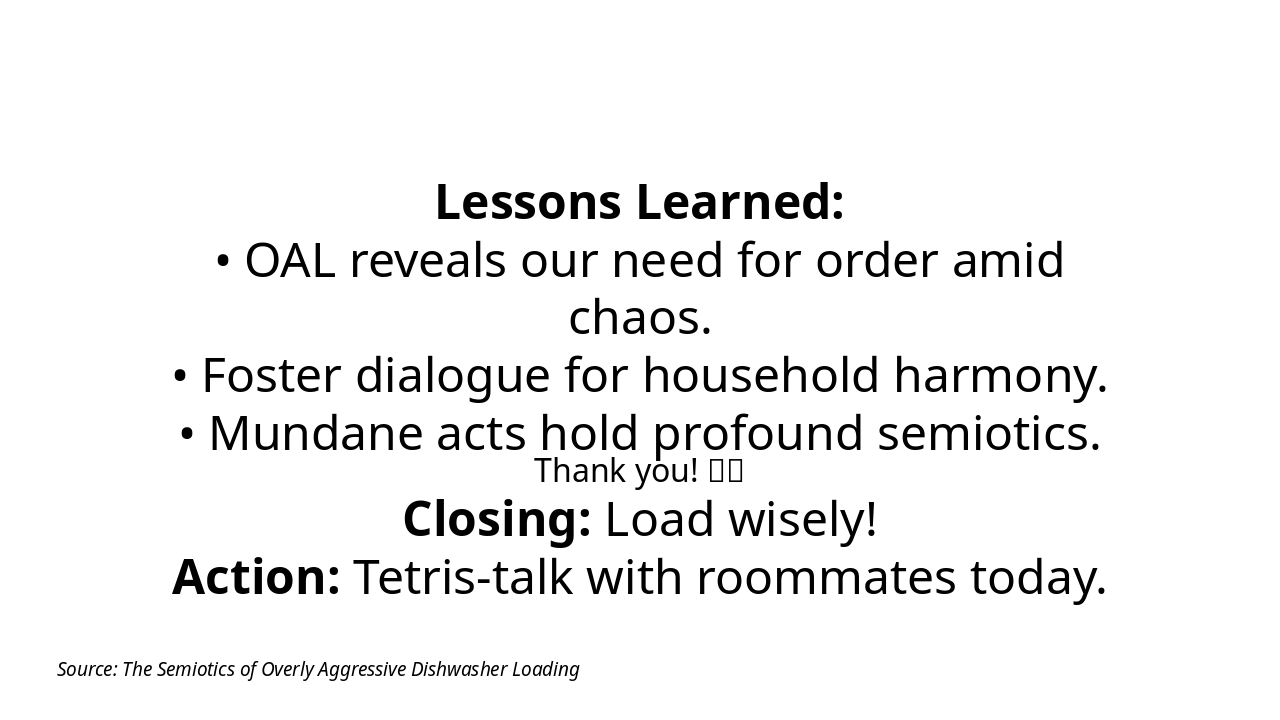 Frameworks for peace and lessons in domestic harmony through chores. Source: The Semiotics of Overly Aggressive Dishwasher Loading