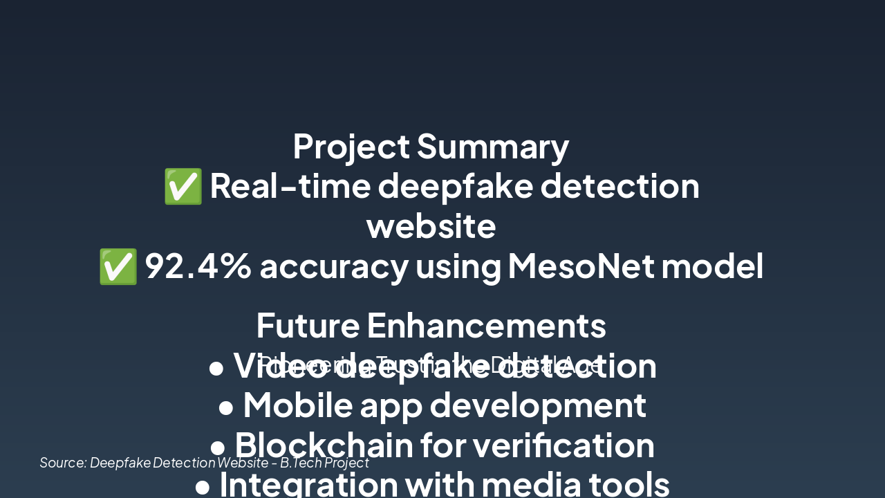 Real-Time Deepfake Detection System by Team Aditya Harsh, Aradhy Tripathi, Shreyash Shaurya Srivastav Supervisor: Er. Paritosh Tripathi IET, Dr. Rammanohar Lohia Avadh University, Ayodhya