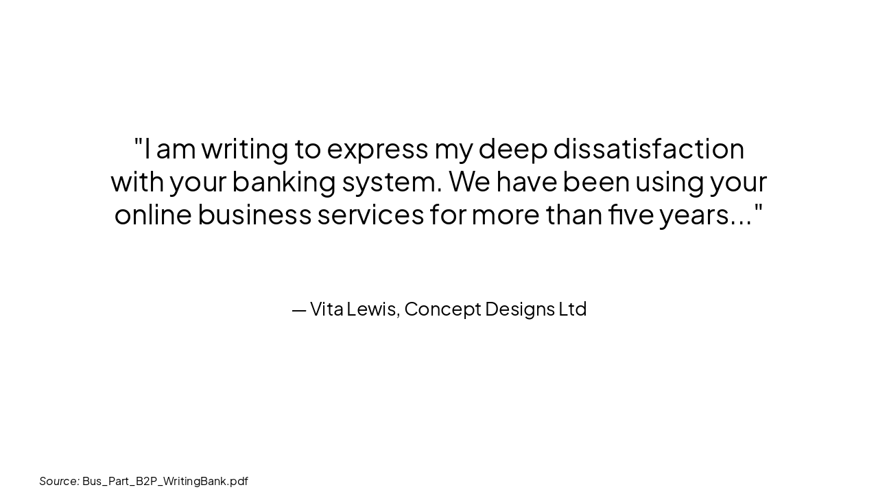 > I am writing to express my deep dissatisfaction with your banking system. We have been using your online business services for more than five years...