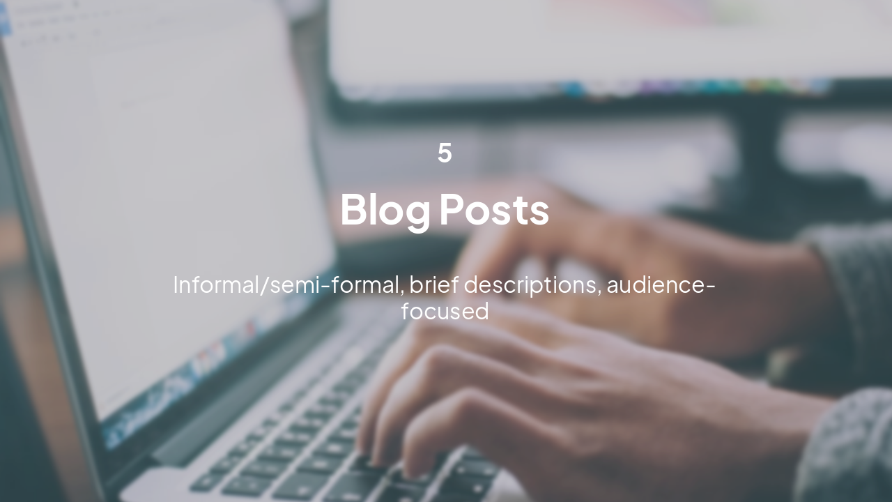 Informal/semi-formal, brief descriptions, audience-focused