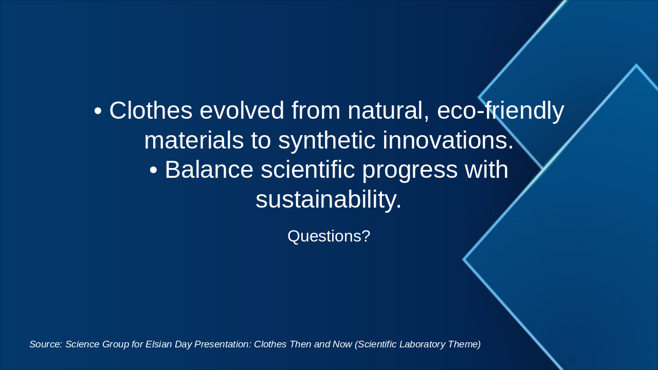 Source: Science Group for Elsian Day Presentation: Clothes Then and Now (Scientific Laboratory Theme)