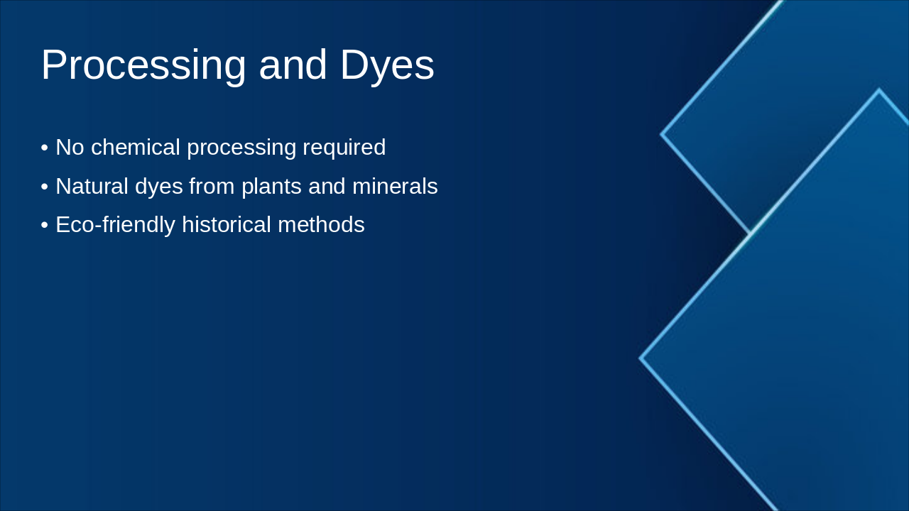 Natural fibers like cotton, wool, silk, linen from plants/animals; biodegradable, natural dyes.