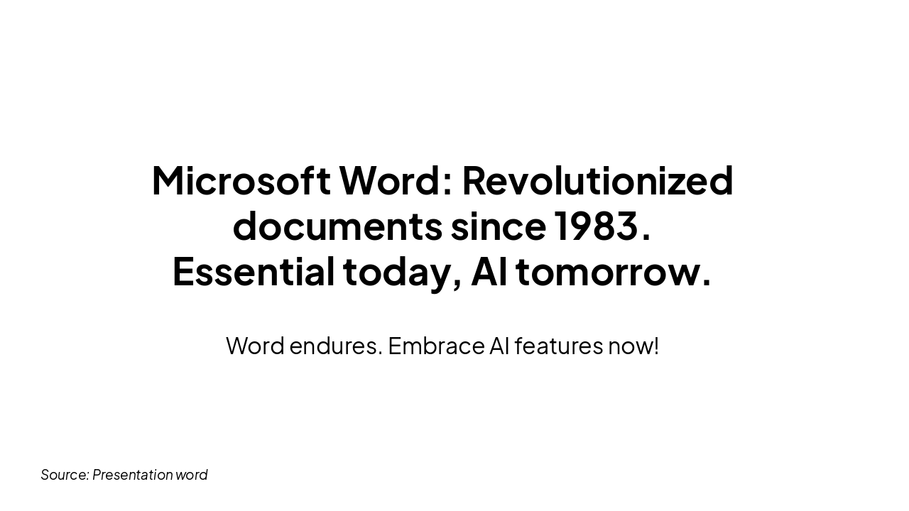 This title slide, named "Microsoft Word," introduces the topic with the main text "Discover Microsoft Word: History & Features." Its subtitle highlights it as "The World’s Leading Word Processor."