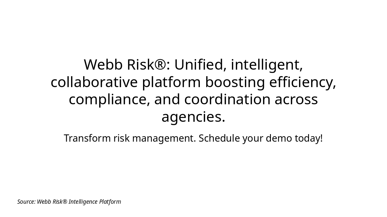 Webb Risk®: Unified, intelligent, collaborative platform boosting efficiency, compliance, and coordination across agencies.