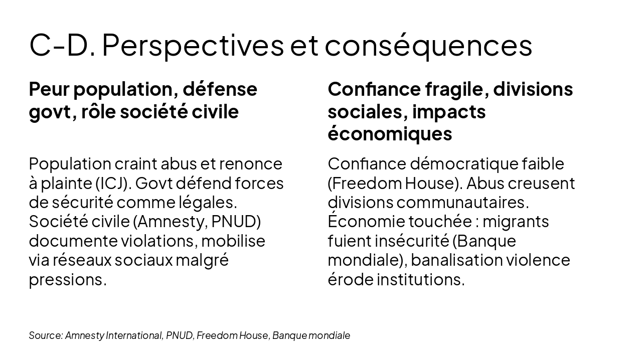 Pour la population, les effets sont concrets : peur de manifester, autocensure sur Internet, banalisation de la violence institutionnelle. Lorsque ces pratiques deviennent normales, la démocratie perd sa crédibilité.