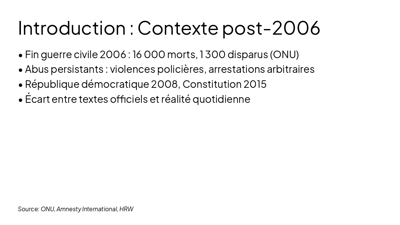 Pourtant, presque vingt ans plus tard, les abus des droits humains n’ont pas disparu. Ils sont simplement devenus moins visibles. Aujourd’hui encore, des organisations comme Amnesty International et Human Rights Watch dénoncent des violences policières, des arrestations arbitraires et des atteintes à la liberté d’expression.