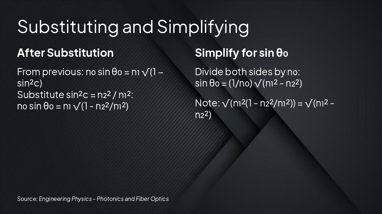 Slide 1 - Derivation of Acceptance Angle and Numerical Aperture of Optical Fiber
