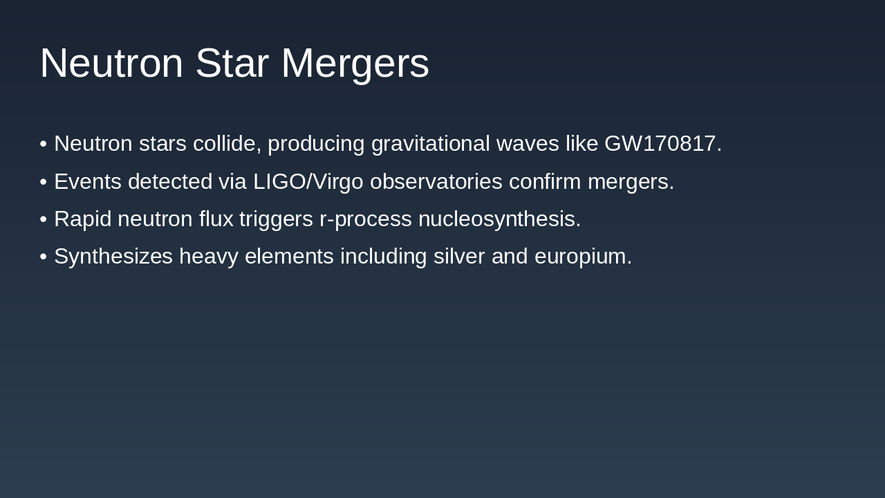 Explaining stellar nucleosynthesis, supernova explosions, and neutron star mergers.