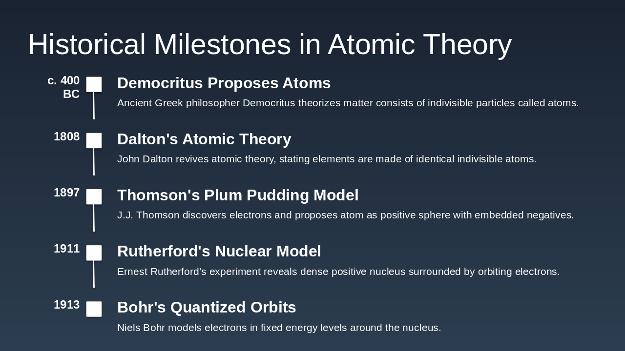 From ancient Greek philosophy through Dalton, Thomson, Rutherford, Bohr, and quantum models.