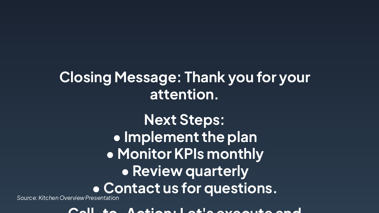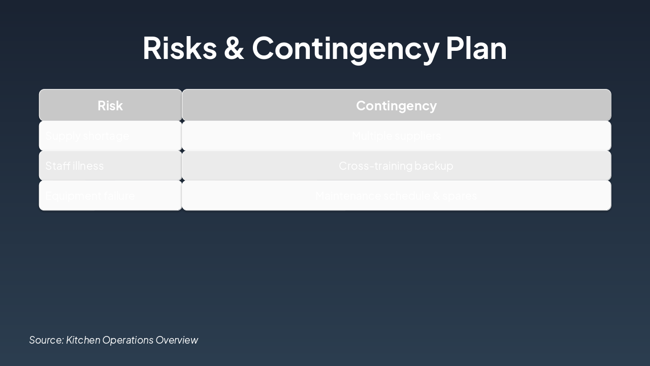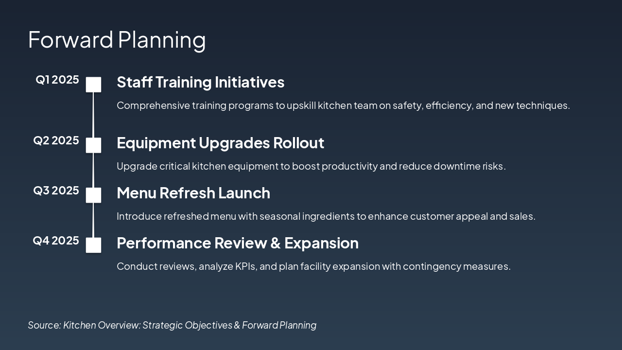 Source: Comprehensive review of kitchen operations, responsibilities, objectives, KPIs, risks, and forward planning.