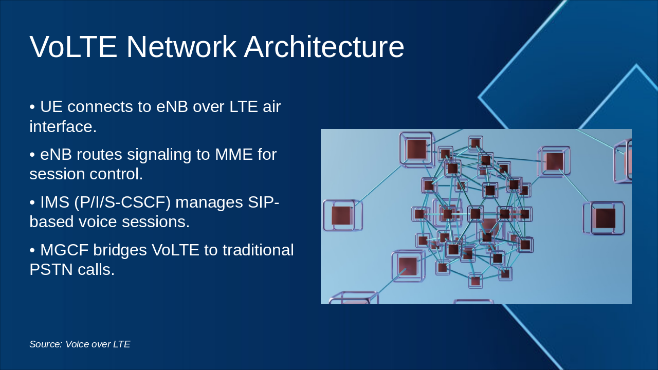 Underlying concepts, IMS/SIP architecture, LTE network, and call flow.