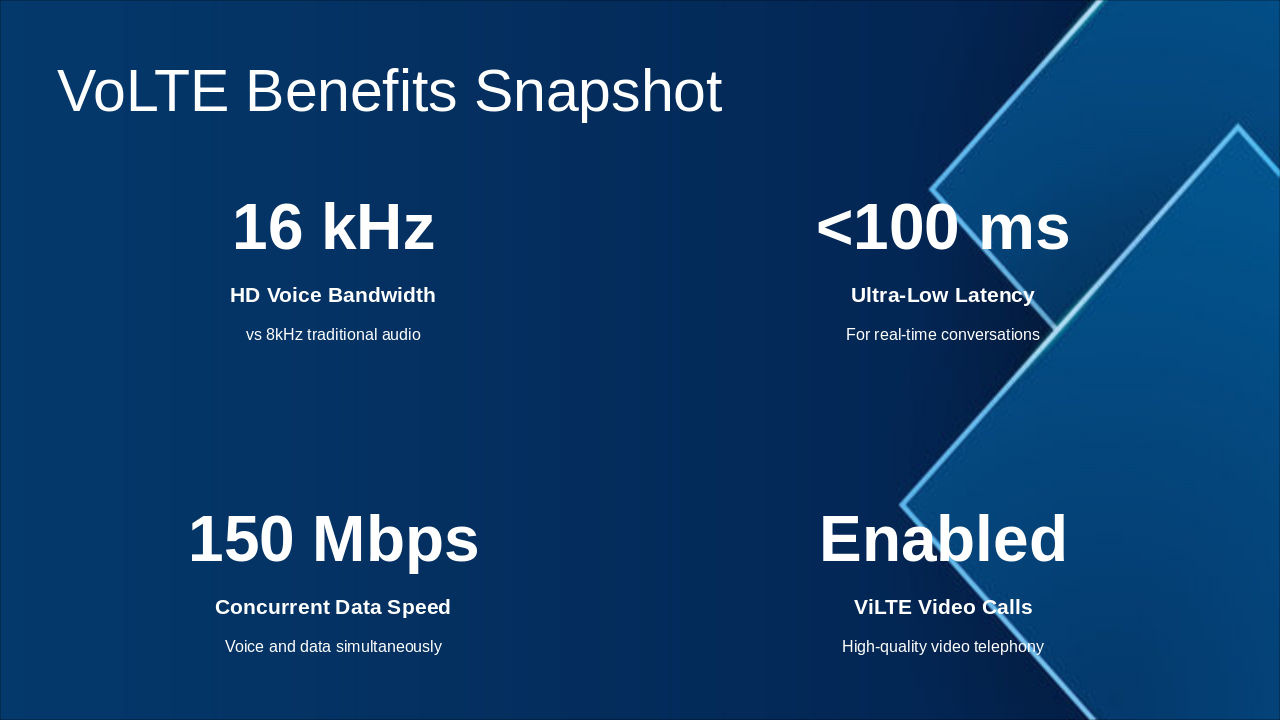 HD voice, simultaneous voice/data, low latency, seamless connectivity.