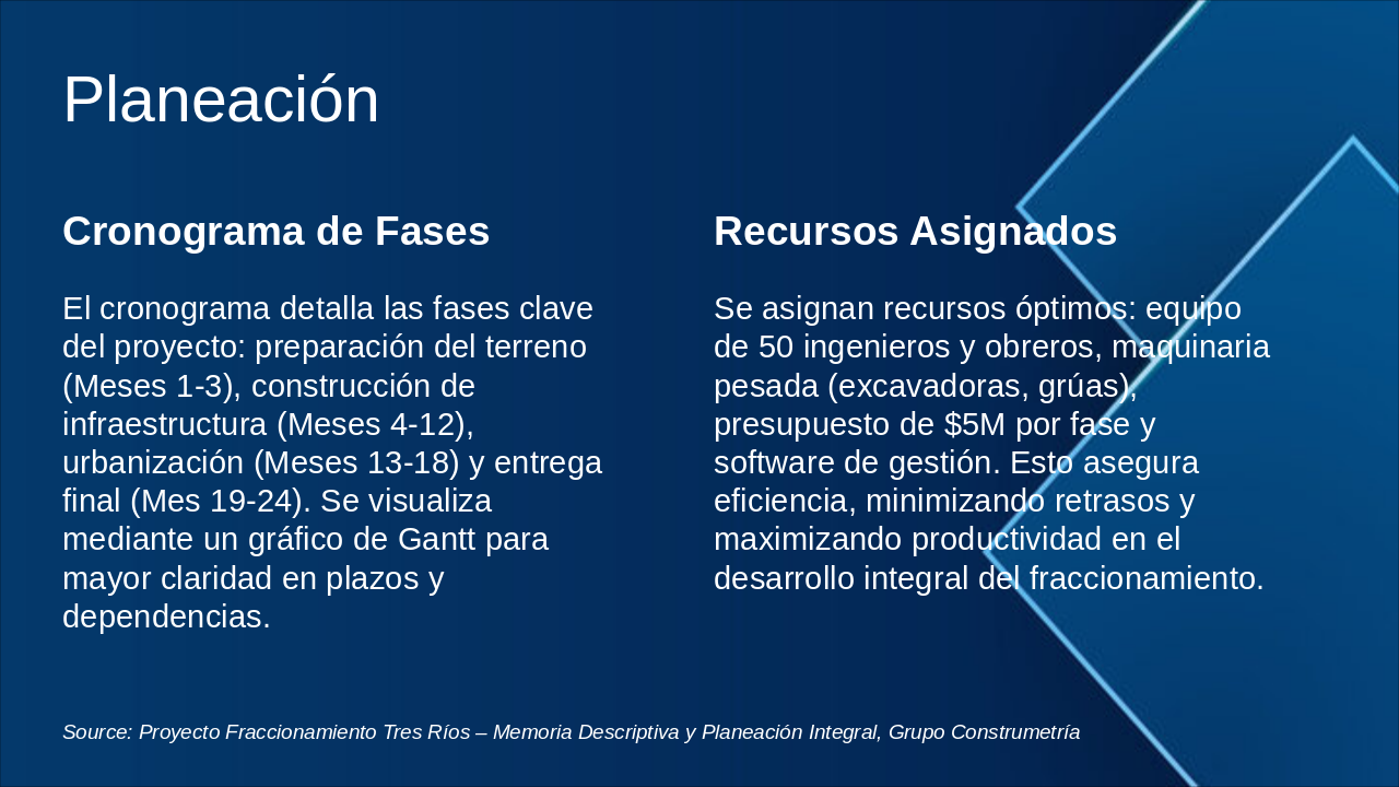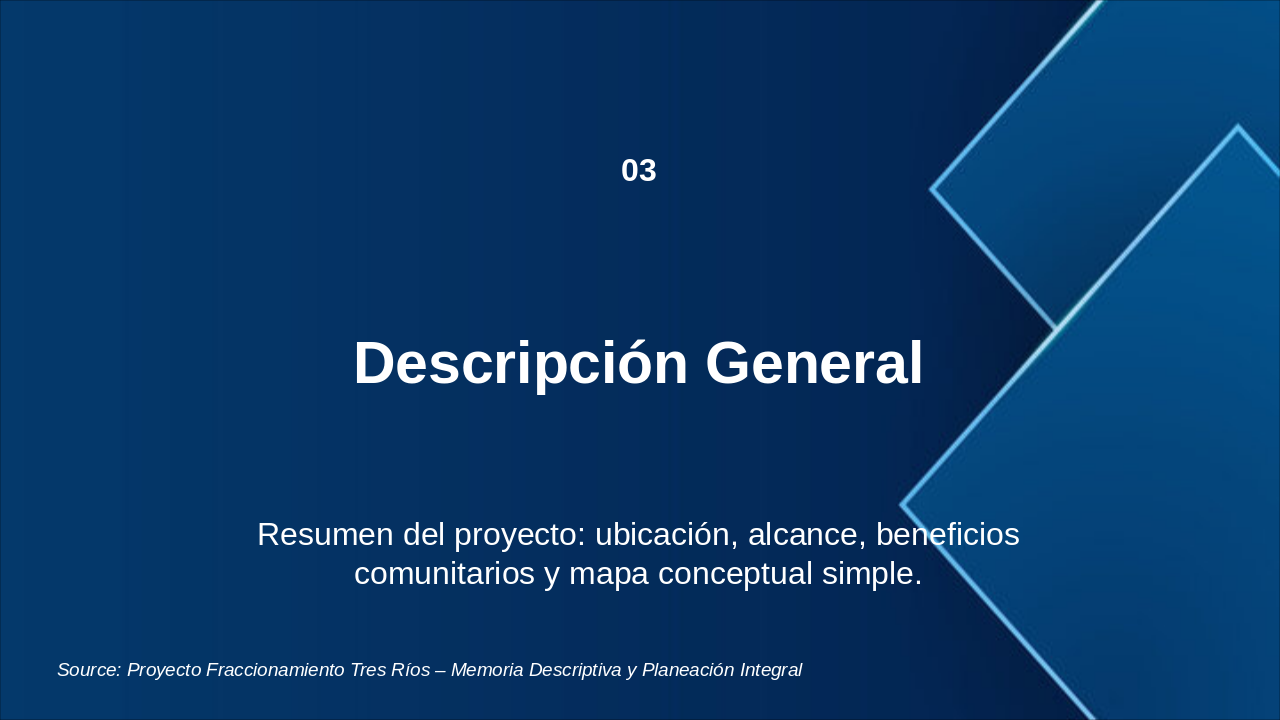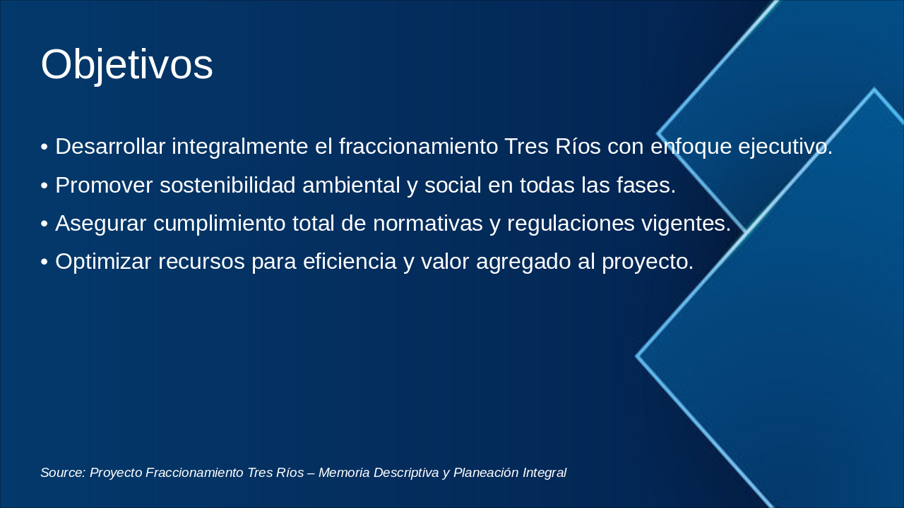 Source: Proyecto Fraccionamiento Tres Ríos – Memoria Descriptiva y Planeación Integral, Grupo Construmetría