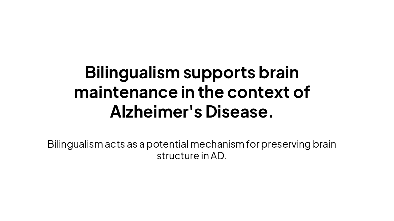 Slide 1 - Bilinguals Show Evidence of Brain Maintenance in Alzheimer’s Disease