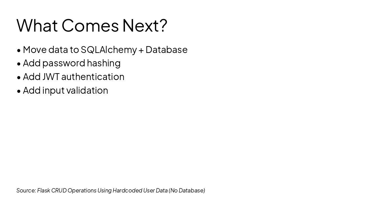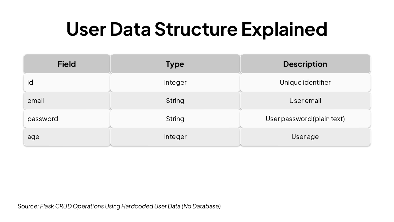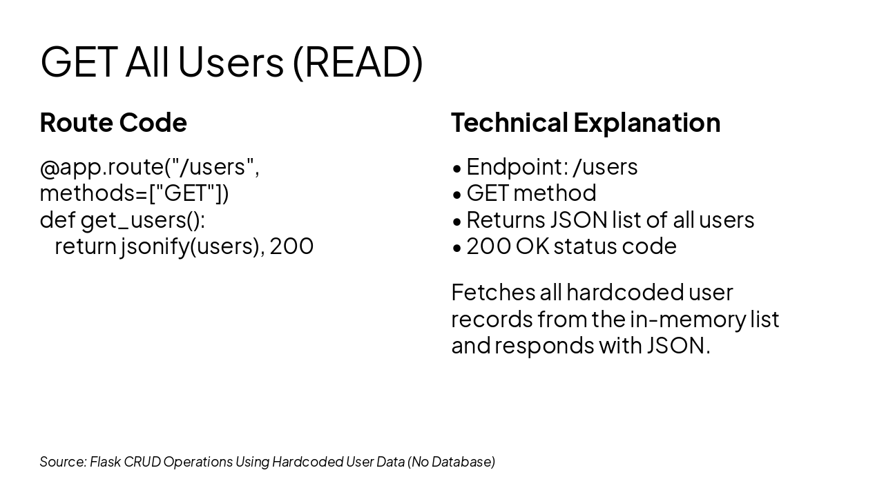 Source: Flask CRUD Operations Using Hardcoded User Data (No Database)