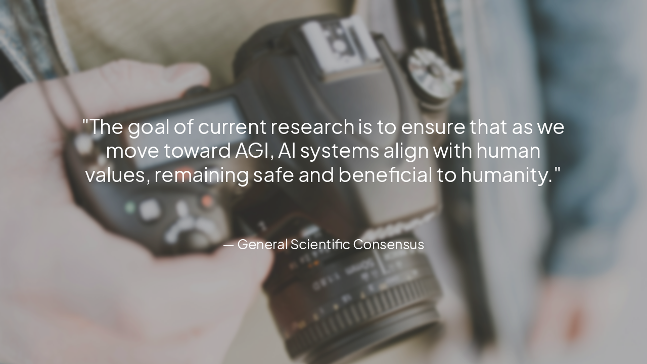 > The goal of current research is to ensure that as we move toward AGI, AI systems align with human values, remaining safe and beneficial to humanity.