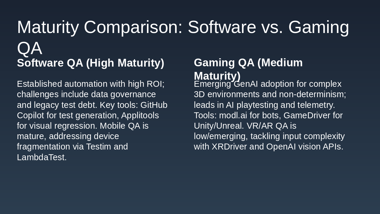 5. Maturity Comparison: Software vs. Gaming QA
