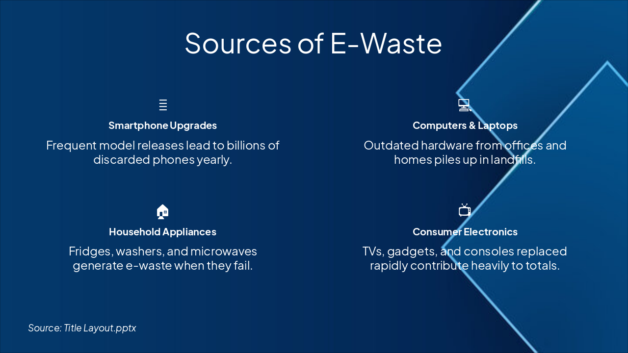 Highlight the 4-step process for responsible e-waste handling: Reduce consumption, Reuse where possible, Recycle through certified centers, and ensure Proper Disposal following established chains. Emphasize individual actions.