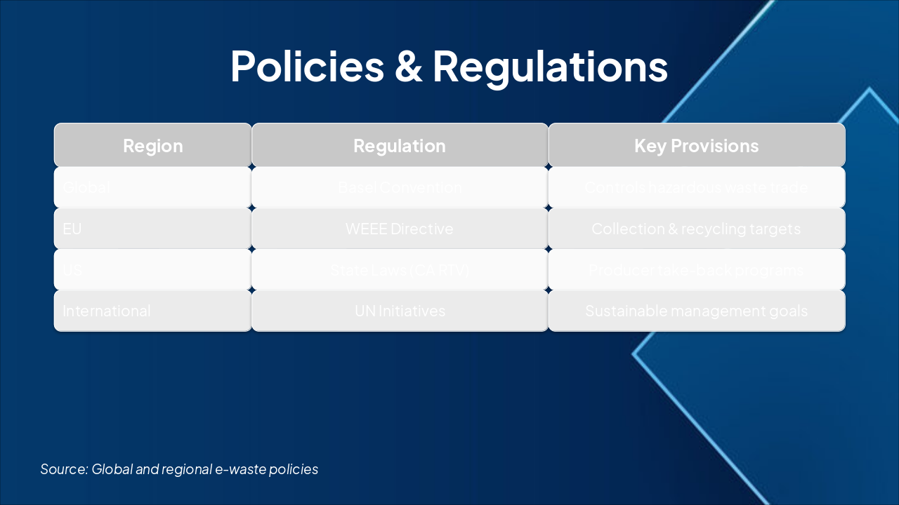 { "headers": [ "Step", "Strategy", "Details" ], "rows": [ [ "Reduce", "Buy less", "Opt for durable, high-quality tech; avoid impulse purchases; extend device lifespan through maintenance" ], [ "Reuse", "Donate or repurpose", "Give functional devices to charities or family; refurbish or upgrade instead of replacing" ], [ "Recycle", "Use e-waste centers", "Locate certified recycling facilities; separate components like batteries and screens" ], [ "Proper Disposal", "Follow disposal chain", "Comply with local regulations; use manufacturer take-back programs for safe end-of-life management" ] ] }