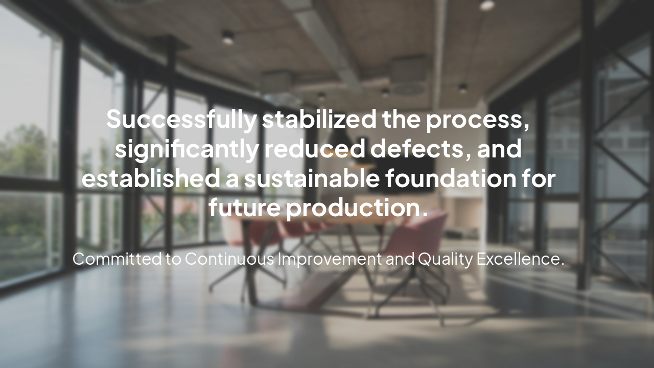 Successfully stabilized the process, significantly reduced defects, and established a sustainable foundation for future production.